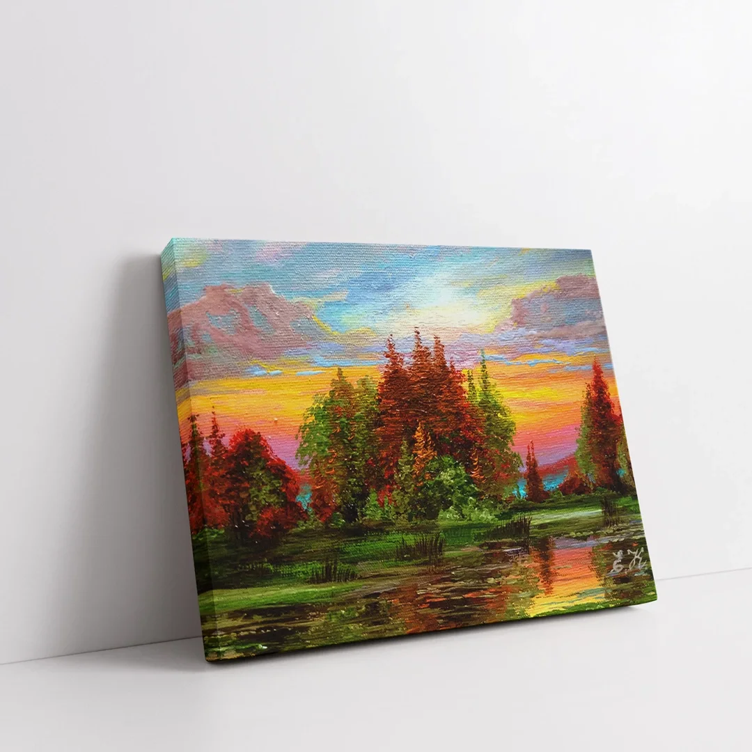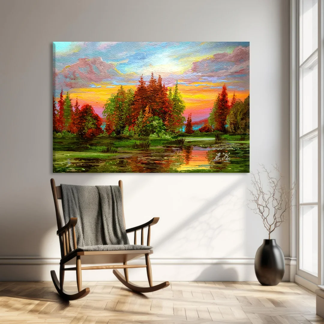 Alacakaranlıkta Göl Kenarı Kanvas Tablo