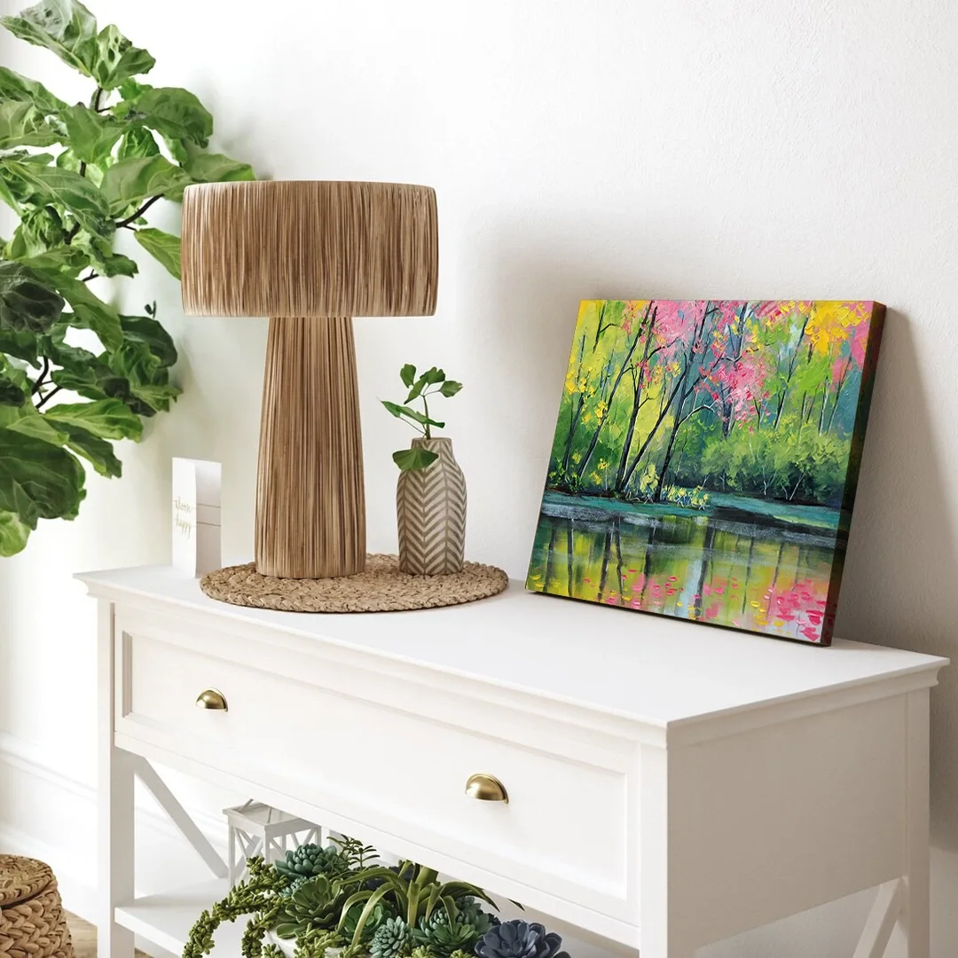 Resmin dokusu ve renklerinin zarif bir şekilde devam ettiği özel bir tasarıma sahiptir. Bu detay, tablolarımızı ek çerçeve ihtiyacı olmadan asılabilir kılar, böylece sanat eserleriniz odanızın atmosferine mükemmel bir şekilde uyum sağlar. Her bir tablomuz, sanatseverlere özel bir estetik deneyim sunmak için özenle tasarlanmıştır.