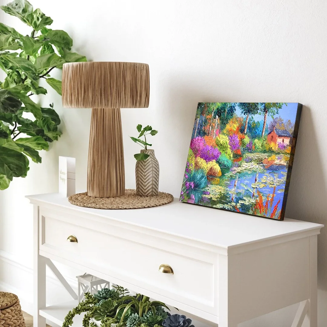Resmin dokusu ve renklerinin zarif bir şekilde devam ettiği özel bir tasarıma sahiptir. Bu detay, tablolarımızı ek çerçeve ihtiyacı olmadan asılabilir kılar, böylece sanat eserleriniz odanızın atmosferine mükemmel bir şekilde uyum sağlar. Her bir tablomuz, sanatseverlere özel bir estetik deneyim sunmak için özenle tasarlanmıştır.