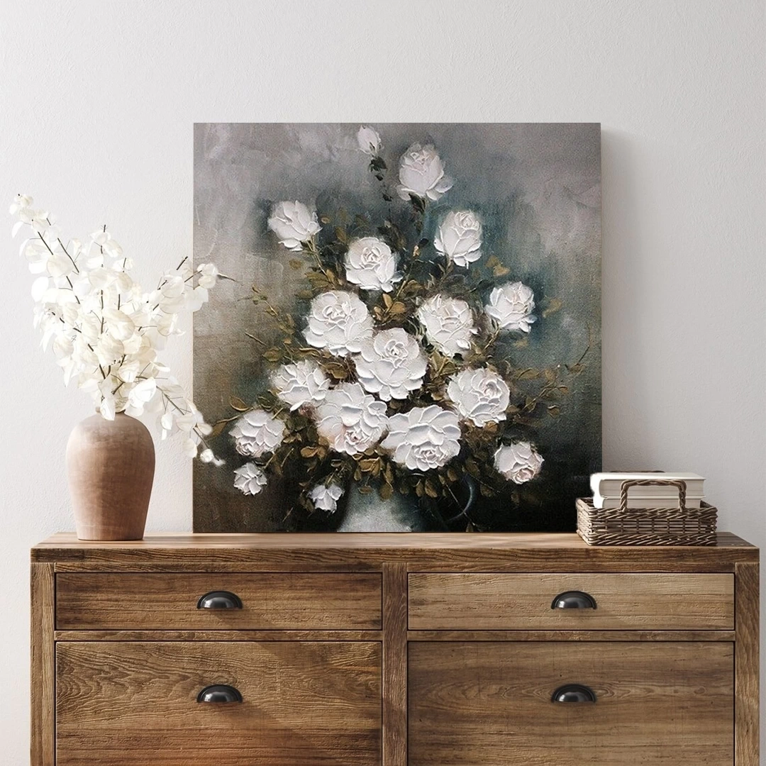 Beyaz Güller Kanvas Tablo 60x60 cm
