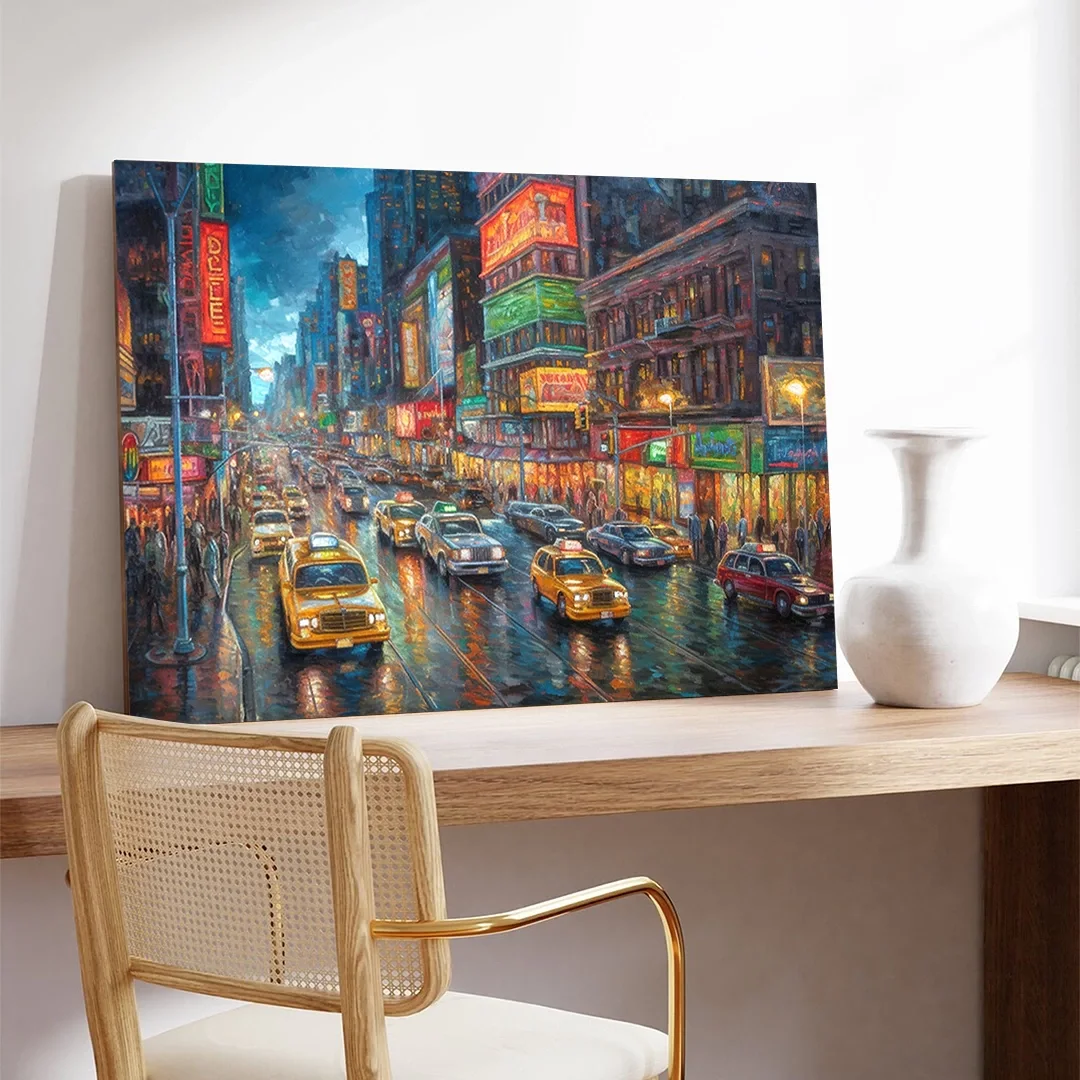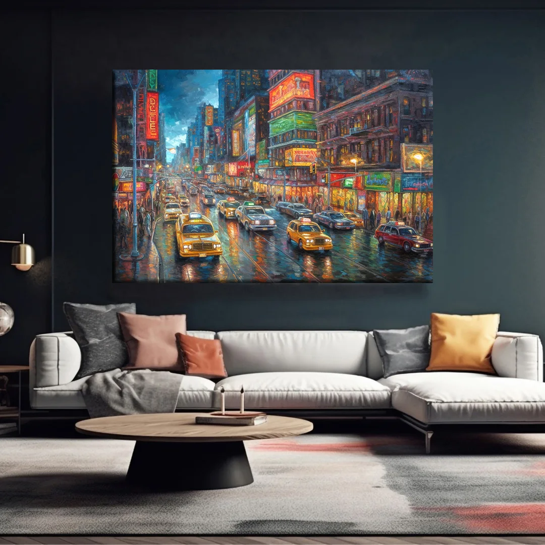Canlı Şehir Gece Trafiği Kanvas Tablo