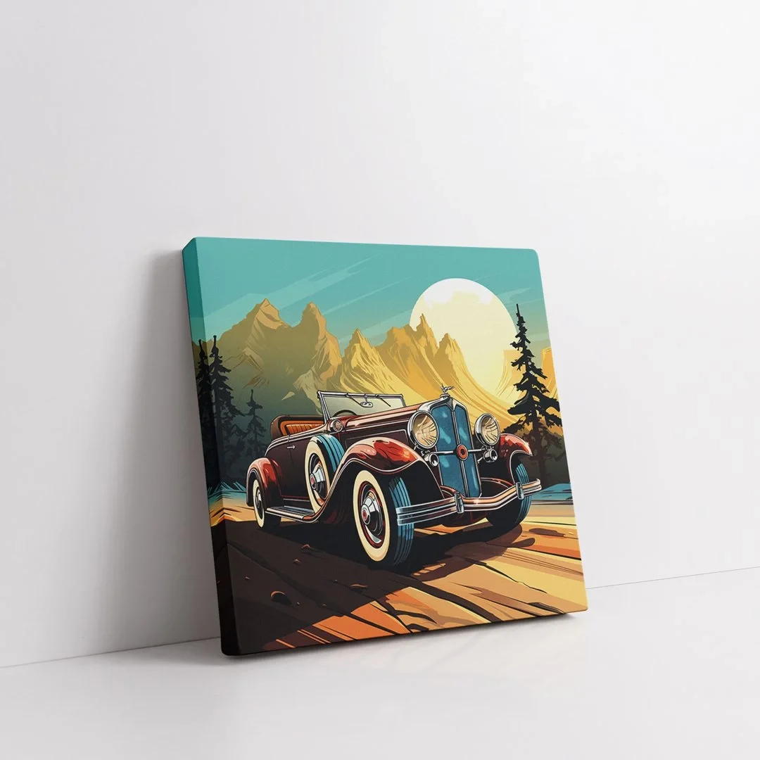 Dağ Manzarası ve Araba Kare Kanvas Tablo