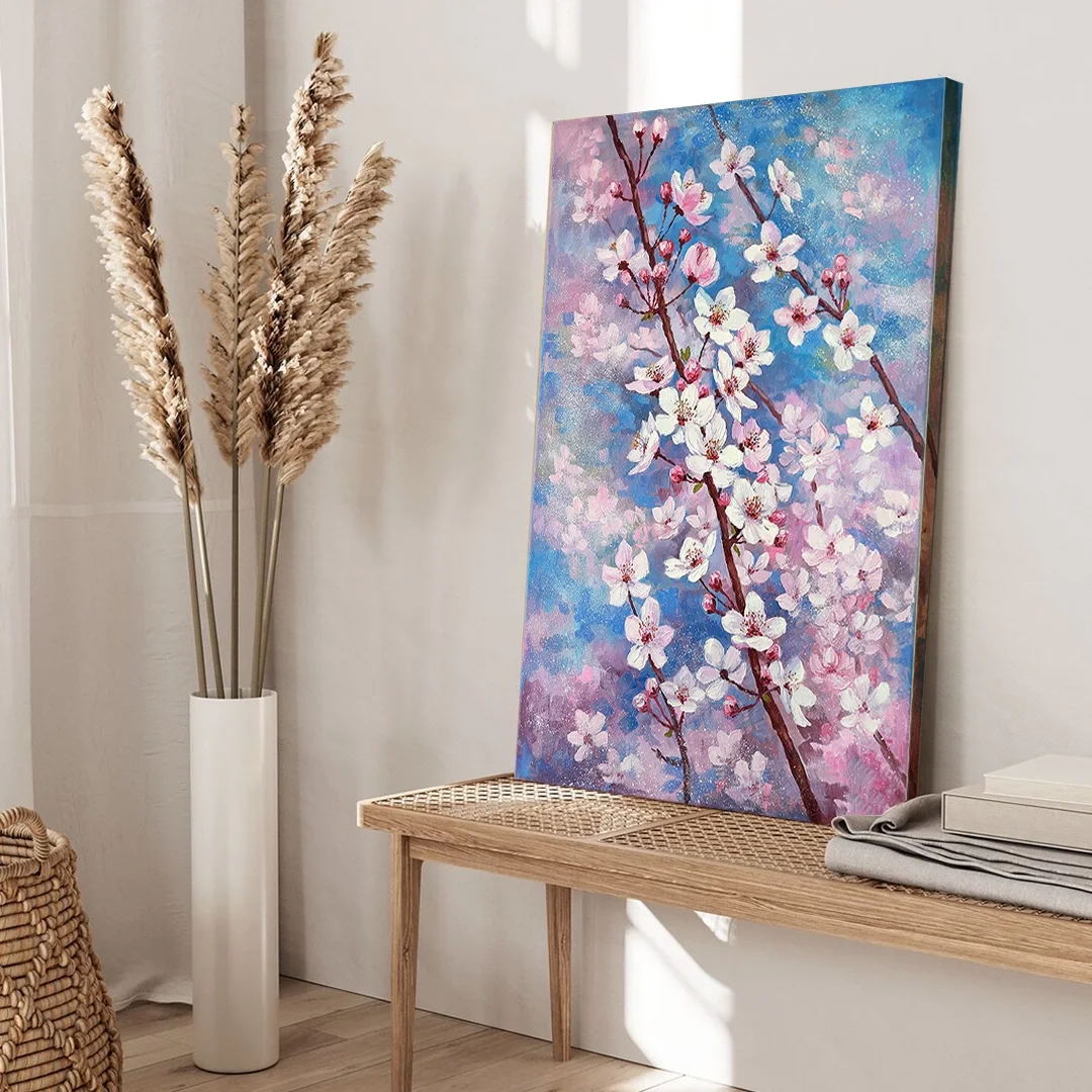 Resmin dokusu ve renklerinin zarif bir şekilde devam ettiği özel bir tasarıma sahiptir. Bu detay, tablolarımızı ek çerçeve ihtiyacı olmadan asılabilir kılar, böylece sanat eserleriniz odanızın atmosferine mükemmel bir şekilde uyum sağlar. Her bir tablomuz, sanatseverlere özel bir estetik deneyim sunmak için özenle tasarlanmıştır.