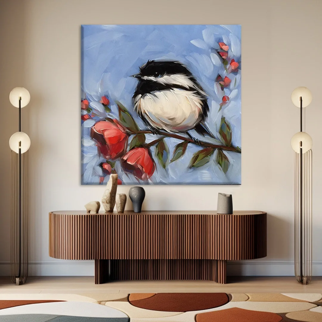 Daldaki Siyah Beyaz Kuş Kanvas Tablo