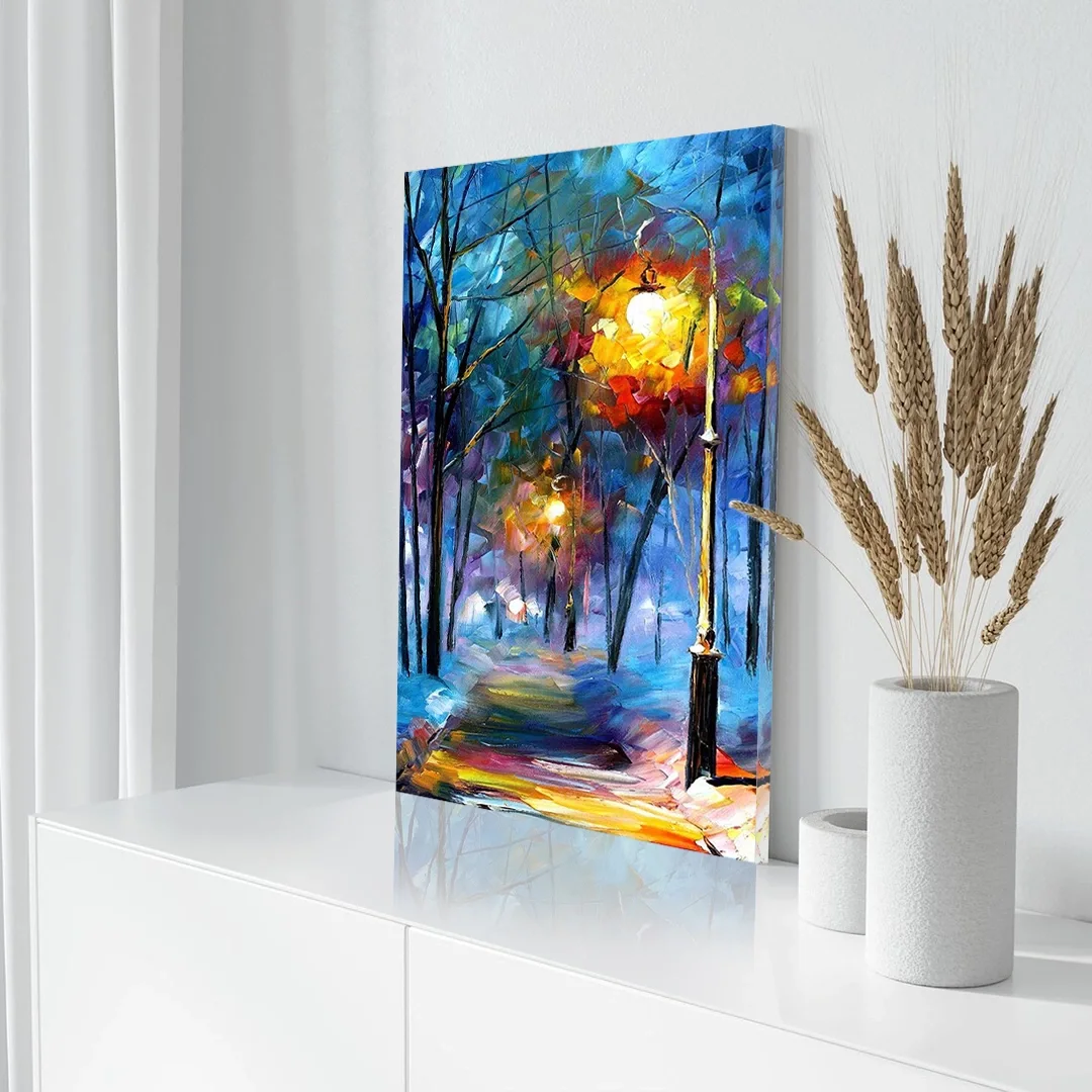 Kanvas tablonuzun bakımı oldukça kolaydır. Düzenli olarak yumuşak, kuru bir bezle tozunu alın. Direkt güneş ışığından ve nemli ortamlardan uzak tutun. Gerektiğinde hafif nemli bir bezle silebilirsiniz, ancak tablonun fazla ıslanmamasına dikkat edin.