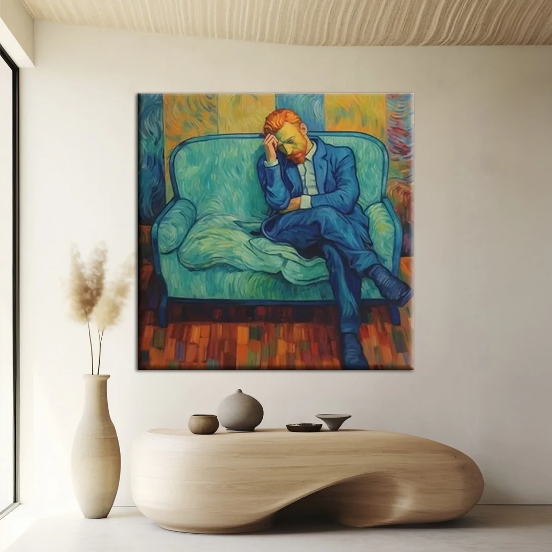 Düşünceli Mavi Kanvas Tablo