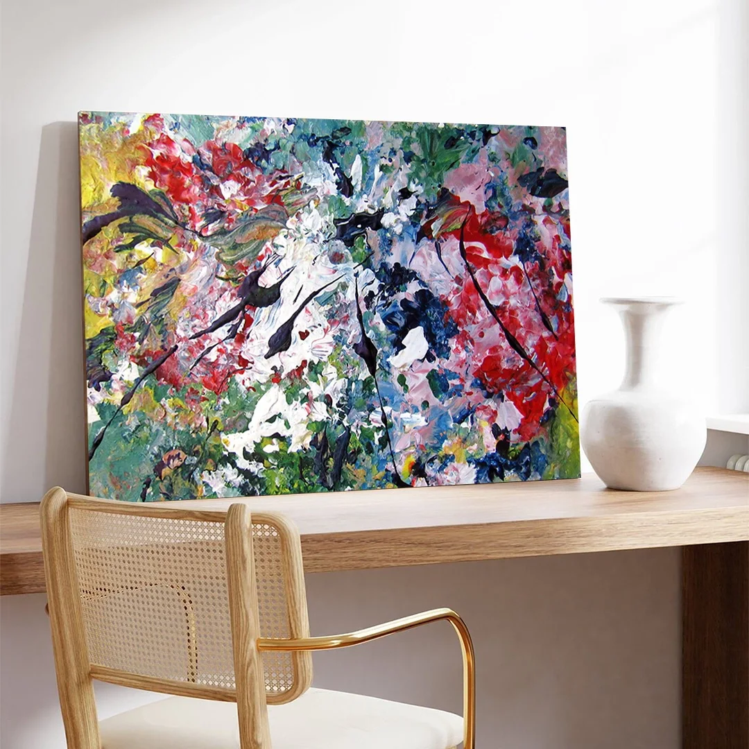 Kanvas tablonuzun bakımı oldukça kolaydır. Düzenli olarak yumuşak, kuru bir bezle tozunu alın. Direkt güneş ışığından ve nemli ortamlardan uzak tutun. Gerektiğinde hafif nemli bir bezle silebilirsiniz, ancak tablonun fazla ıslanmamasına dikkat edin.