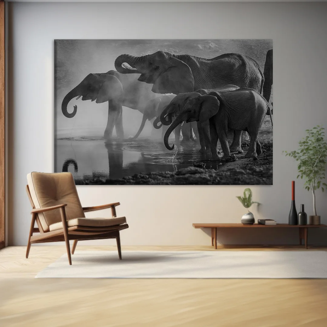 Fil Sürüsü Kanvas Tablo