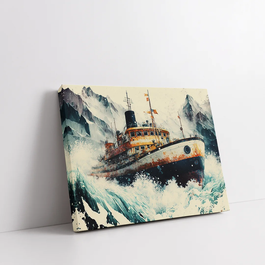Fırtınalı Deniz ve Gemi Yatay Kanvas Tablo