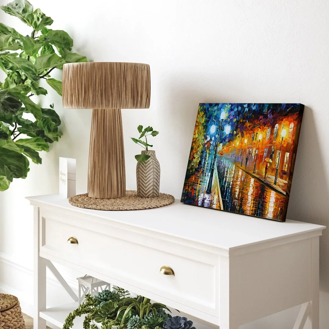 Resmin dokusu ve renklerinin zarif bir şekilde devam ettiği özel bir tasarıma sahiptir. Bu detay, tablolarımızı ek çerçeve ihtiyacı olmadan asılabilir kılar, böylece sanat eserleriniz odanızın atmosferine mükemmel bir şekilde uyum sağlar. Her bir tablomuz, sanatseverlere özel bir estetik deneyim sunmak için özenle tasarlanmıştır.