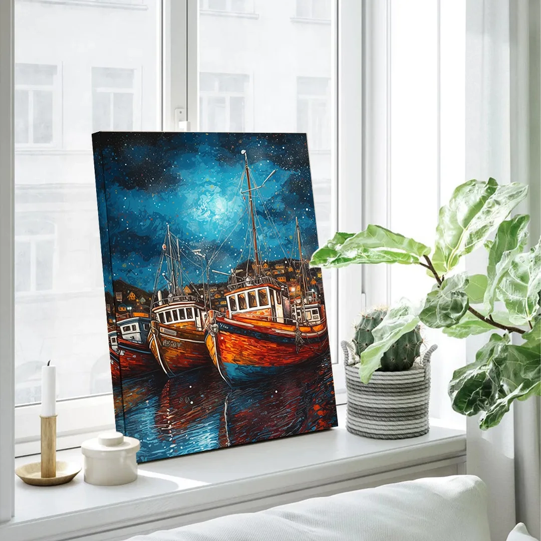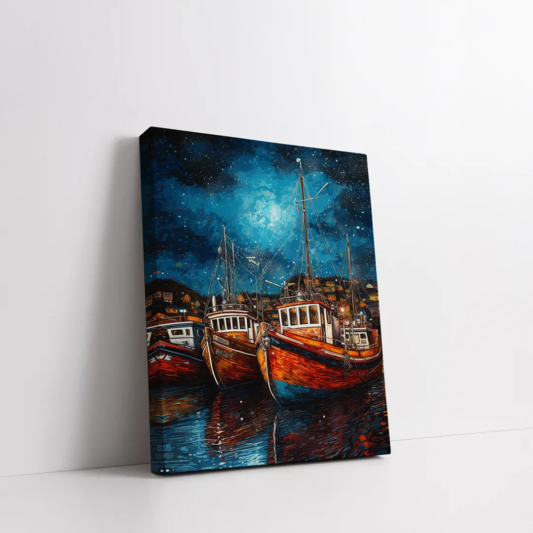 Gece Tekne Dikey Kanvas Tablo