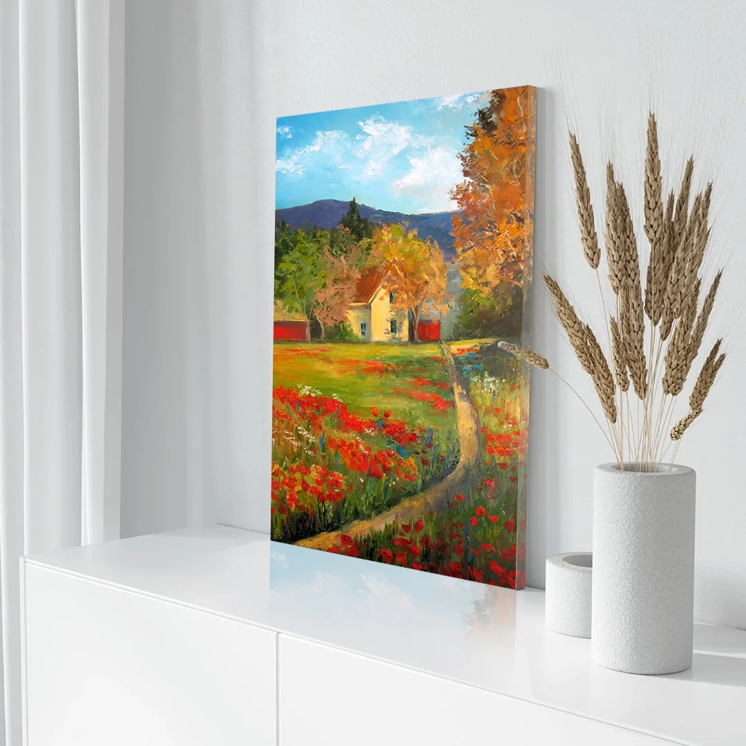Kanvas tablonuzun bakımı oldukça kolaydır. Düzenli olarak yumuşak, kuru bir bezle tozunu alın. Direkt güneş ışığından ve nemli ortamlardan uzak tutun. Gerektiğinde hafif nemli bir bezle silebilirsiniz, ancak tablonun fazla ıslanmamasına dikkat edin.