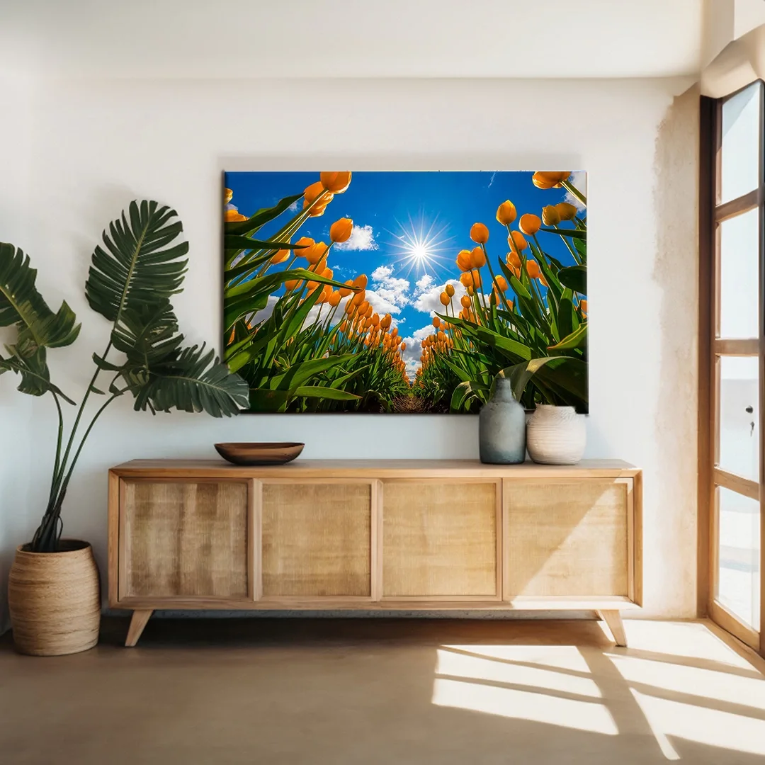Gökyüzüne Uzanan Sarı Laleler Kanvas Tablo