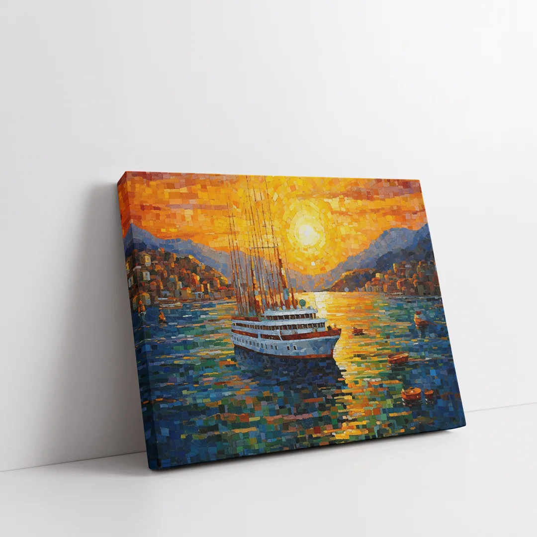Gün Batımı ve Tekne Yatay Kanvas Tablo
