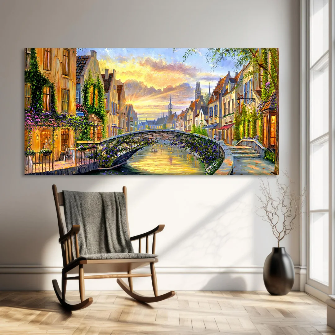 Kanal Üzerinde Akşam Kanvas Tablo
