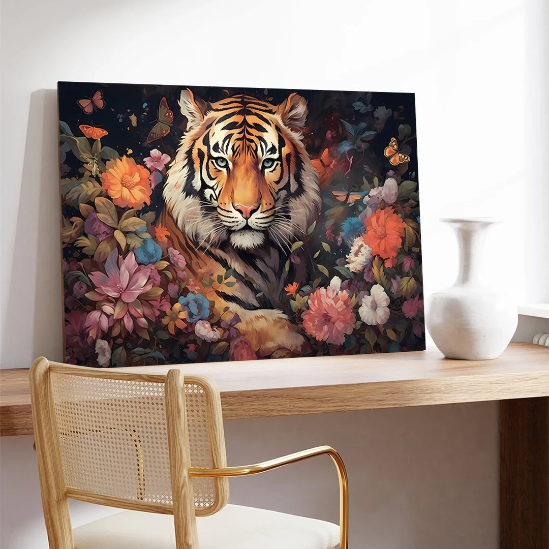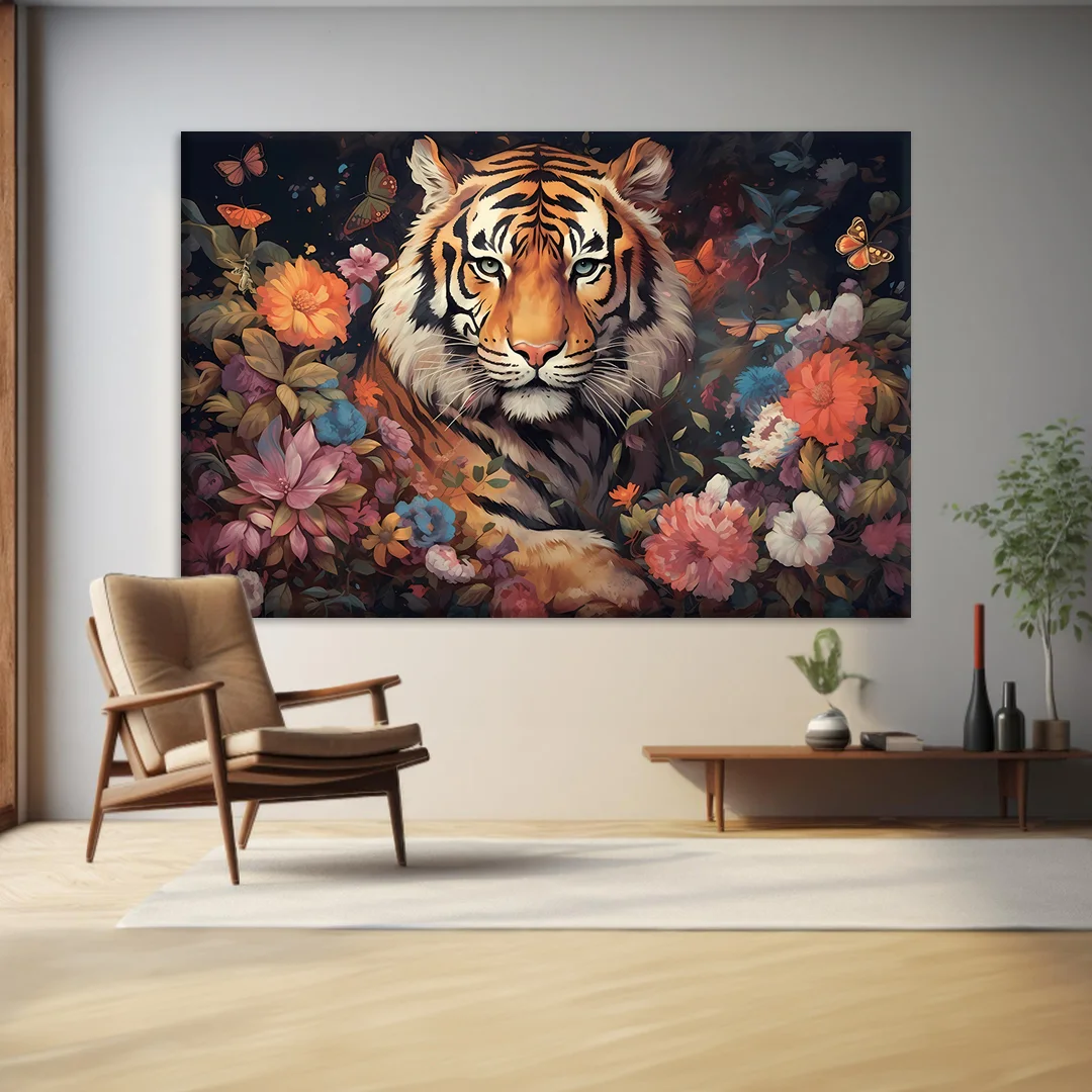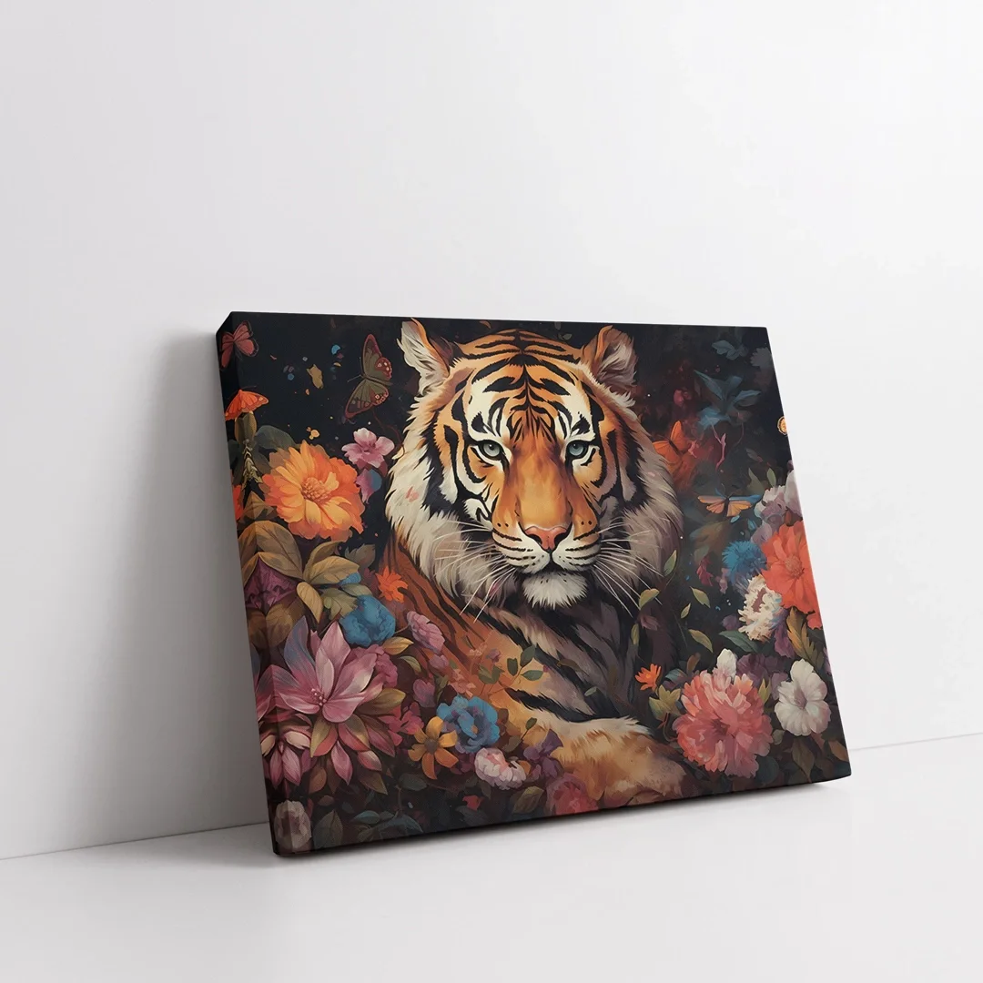 Kaplan ve Çiçekler Kanvas Tablo