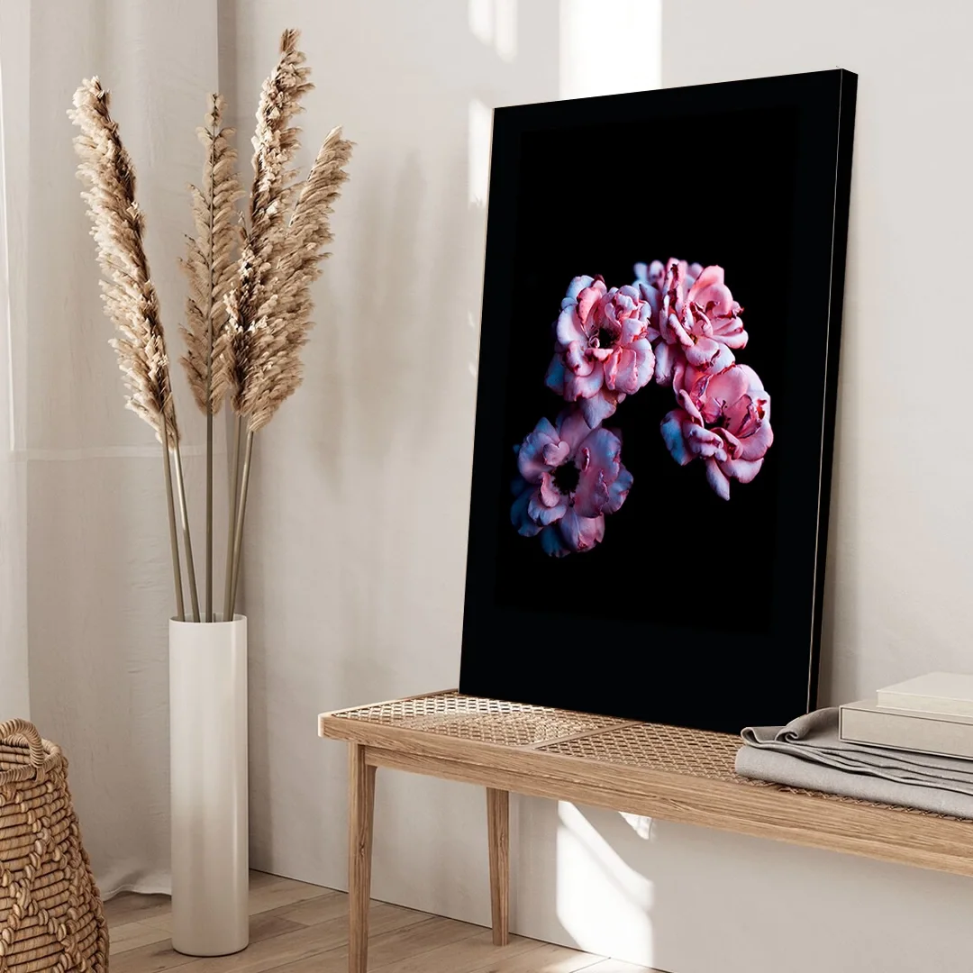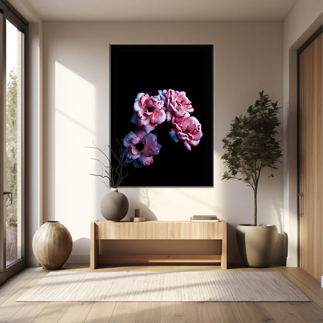 Kara Arkaplandaki Pembe Çiçekler Kanvas Tablo
