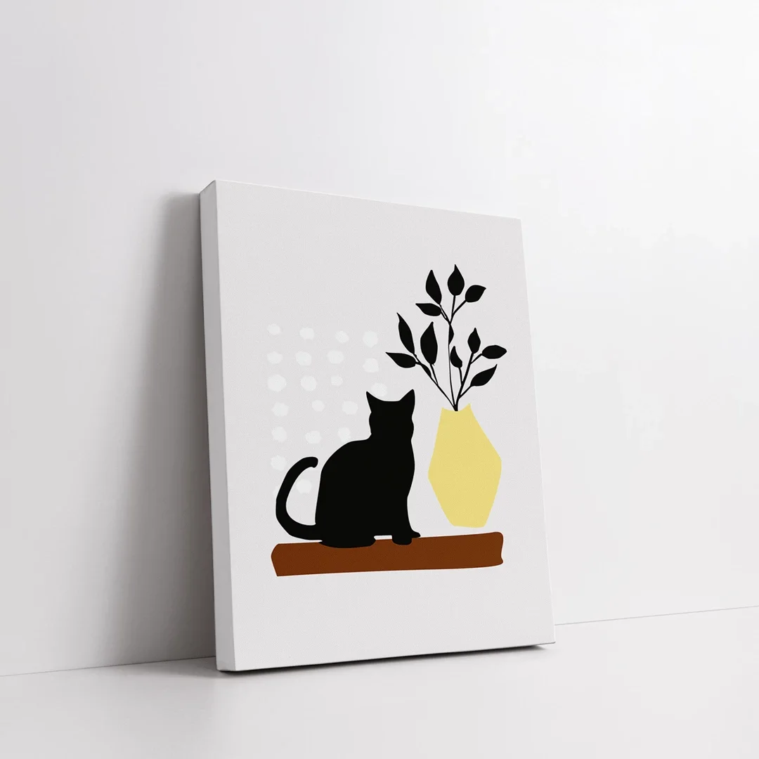 Kedi ve Çiçek Kanvas Tablo