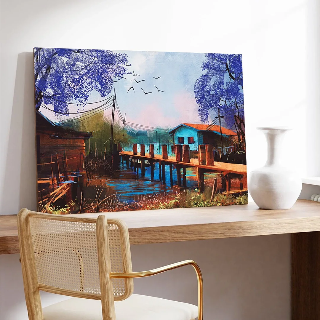 Kanvas tablonuzun bakımı oldukça kolaydır. Düzenli olarak yumuşak, kuru bir bezle tozunu alın. Direkt güneş ışığından ve nemli ortamlardan uzak tutun. Gerektiğinde hafif nemli bir bezle silebilirsiniz, ancak tablonun fazla ıslanmamasına dikkat edin.