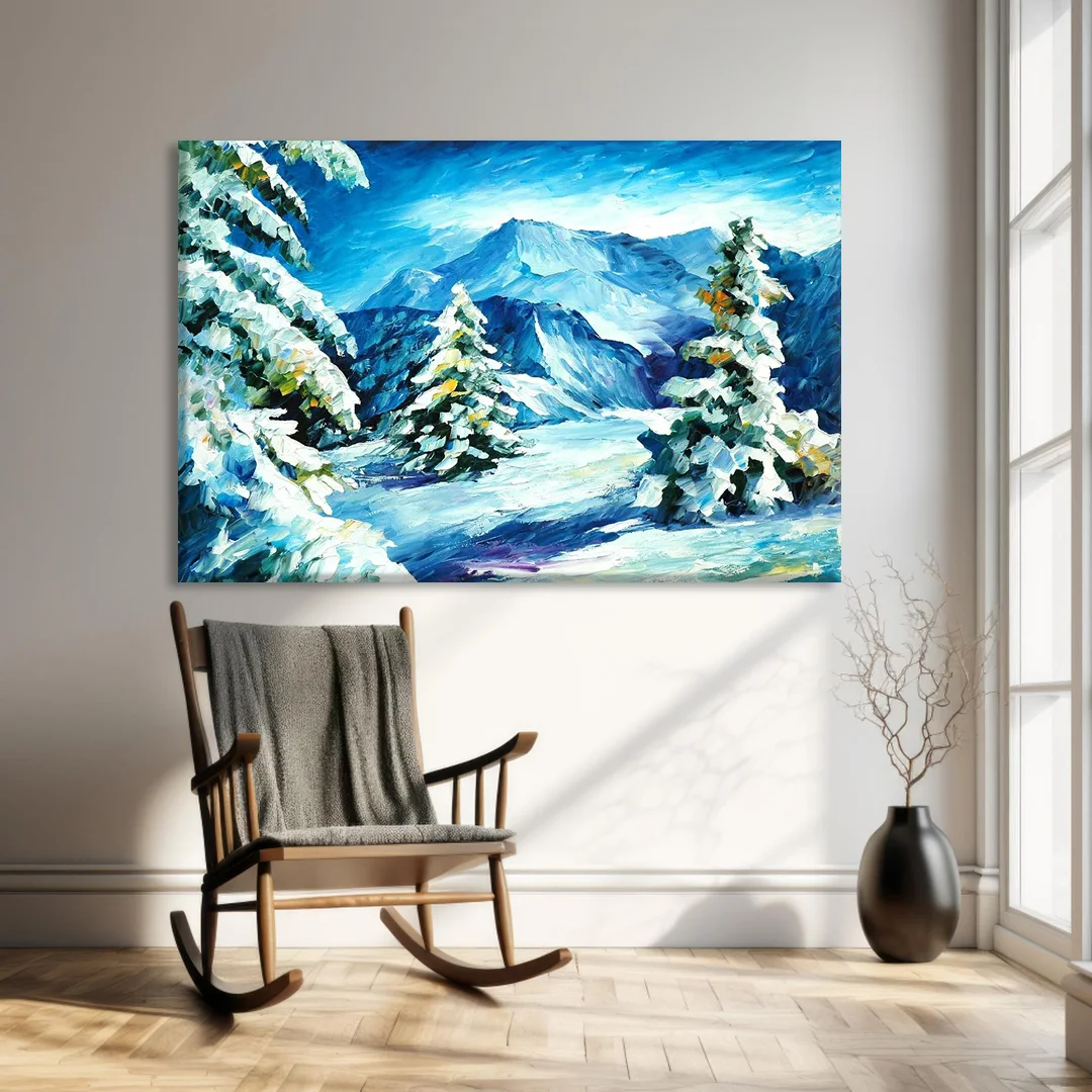 Kışın Karlı Zirveleri Kanvas Tablo