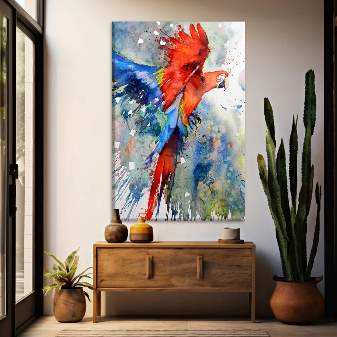 Kızıl Papağan Kanvas Tablo