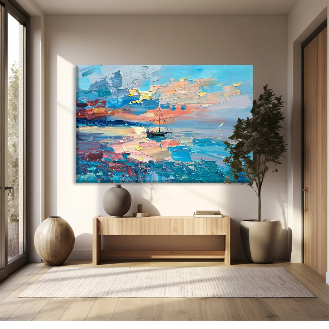 Kanvas tablonuzun bakımı oldukça kolaydır. Düzenli olarak yumuşak, kuru bir bezle tozunu alın. Direkt güneş ışığından ve nemli ortamlardan uzak tutun. Gerektiğinde hafif nemli bir bezle silebilirsiniz, ancak tablonun fazla ıslanmamasına dikkat edin.