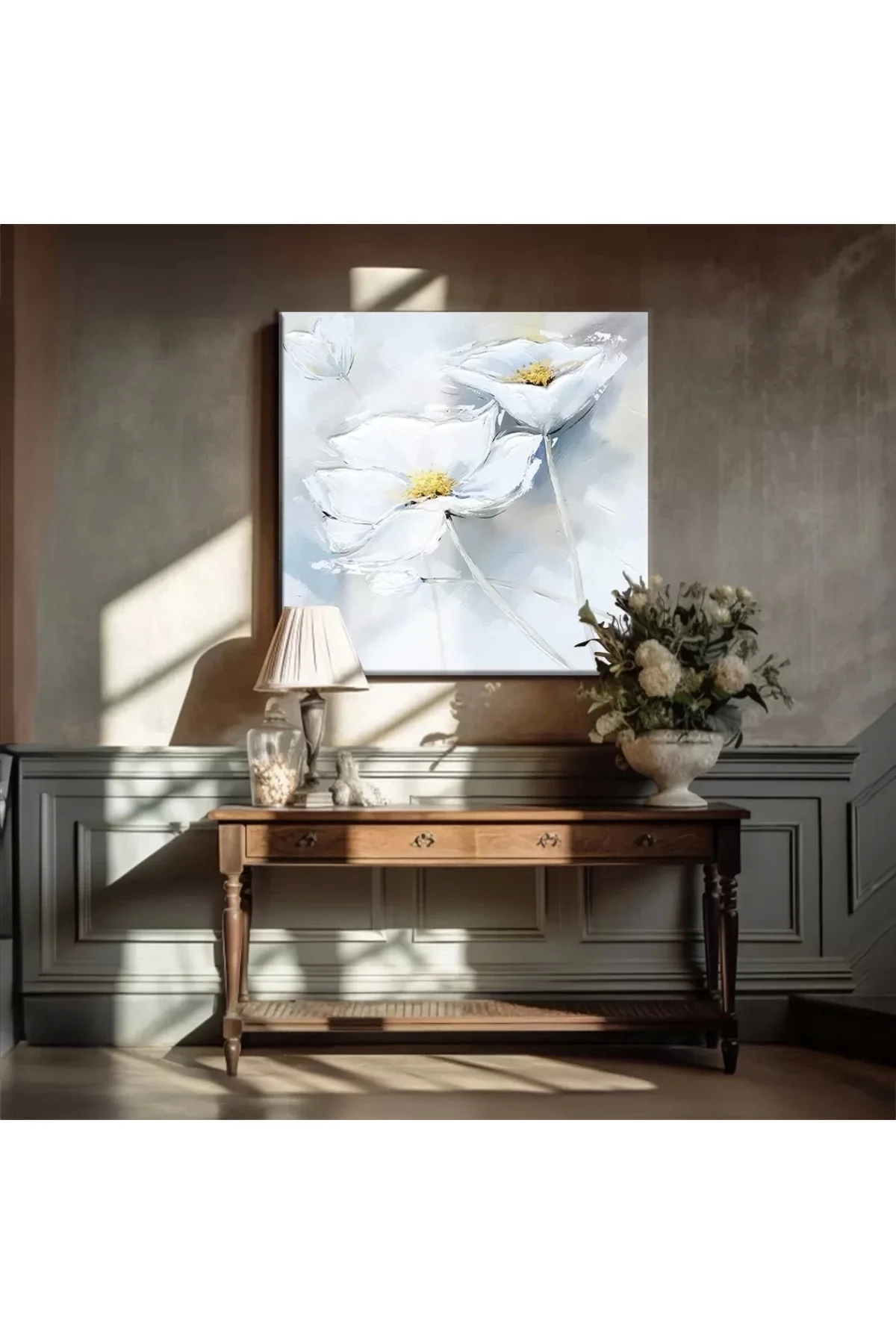 Kanvas tablonuzun bakımı oldukça kolaydır. Düzenli olarak yumuşak, kuru bir bezle tozunu alın. Direkt güneş ışığından ve nemli ortamlardan uzak tutun. Gerektiğinde hafif nemli bir bezle silebilirsiniz, ancak tablonun fazla ıslanmamasına dikkat edin.