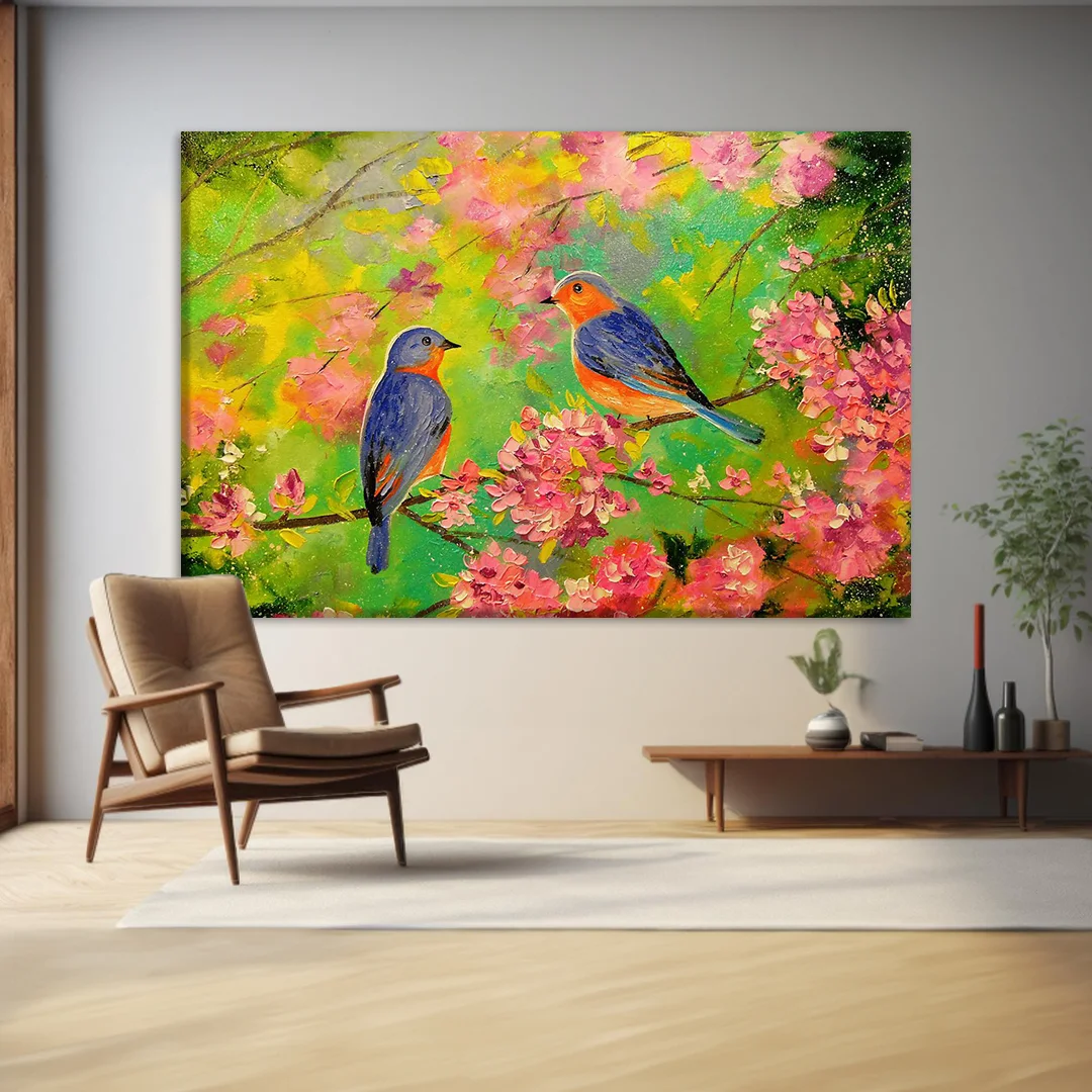Kuş ve Çiçekler Kanvas Tablo