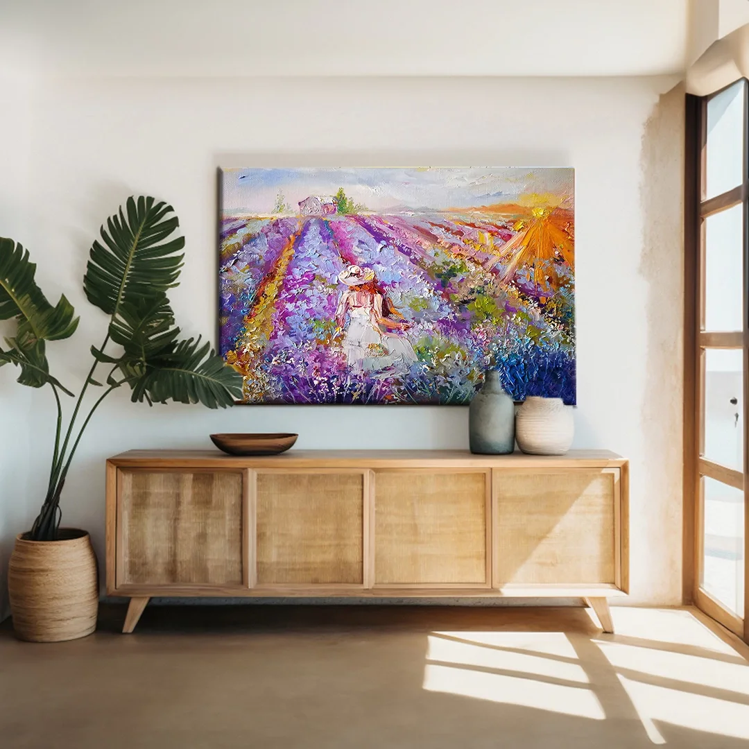 Lavanta Bahçesindeki Kadın Kanvas Tablo