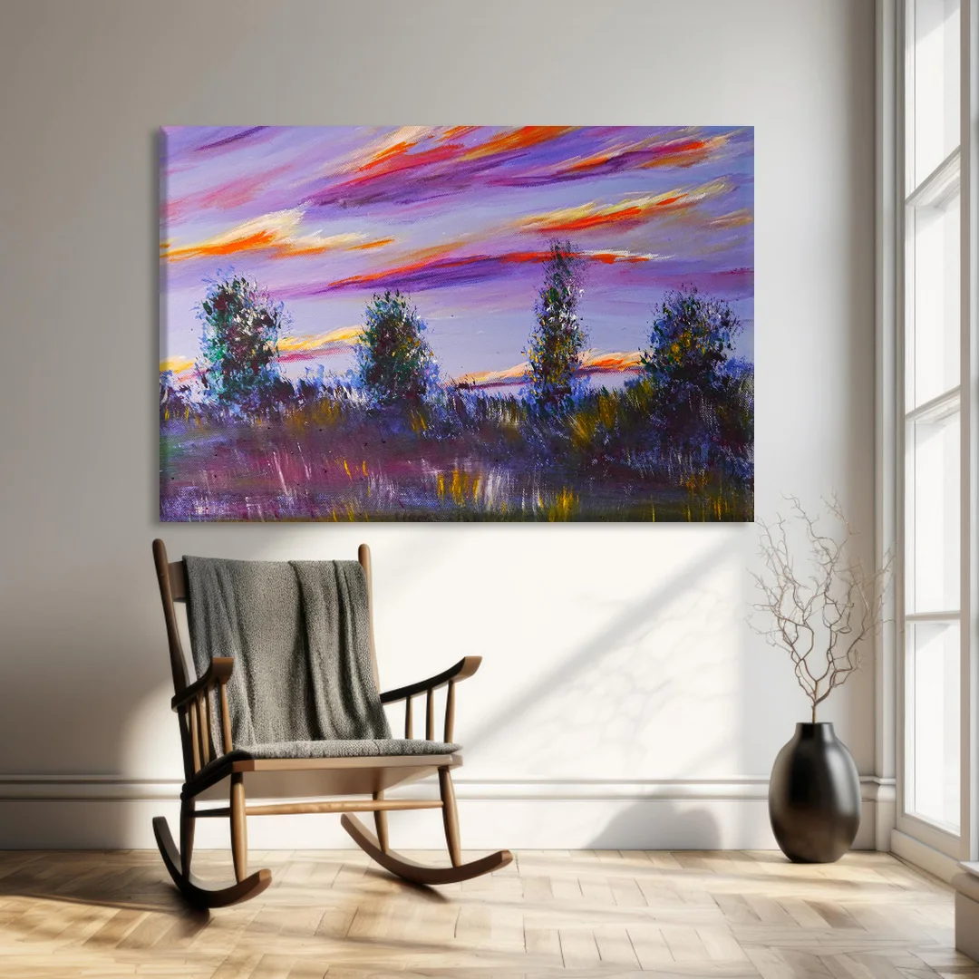 Lavanta Tarlalarında Günbatımı Kanvas Tablo