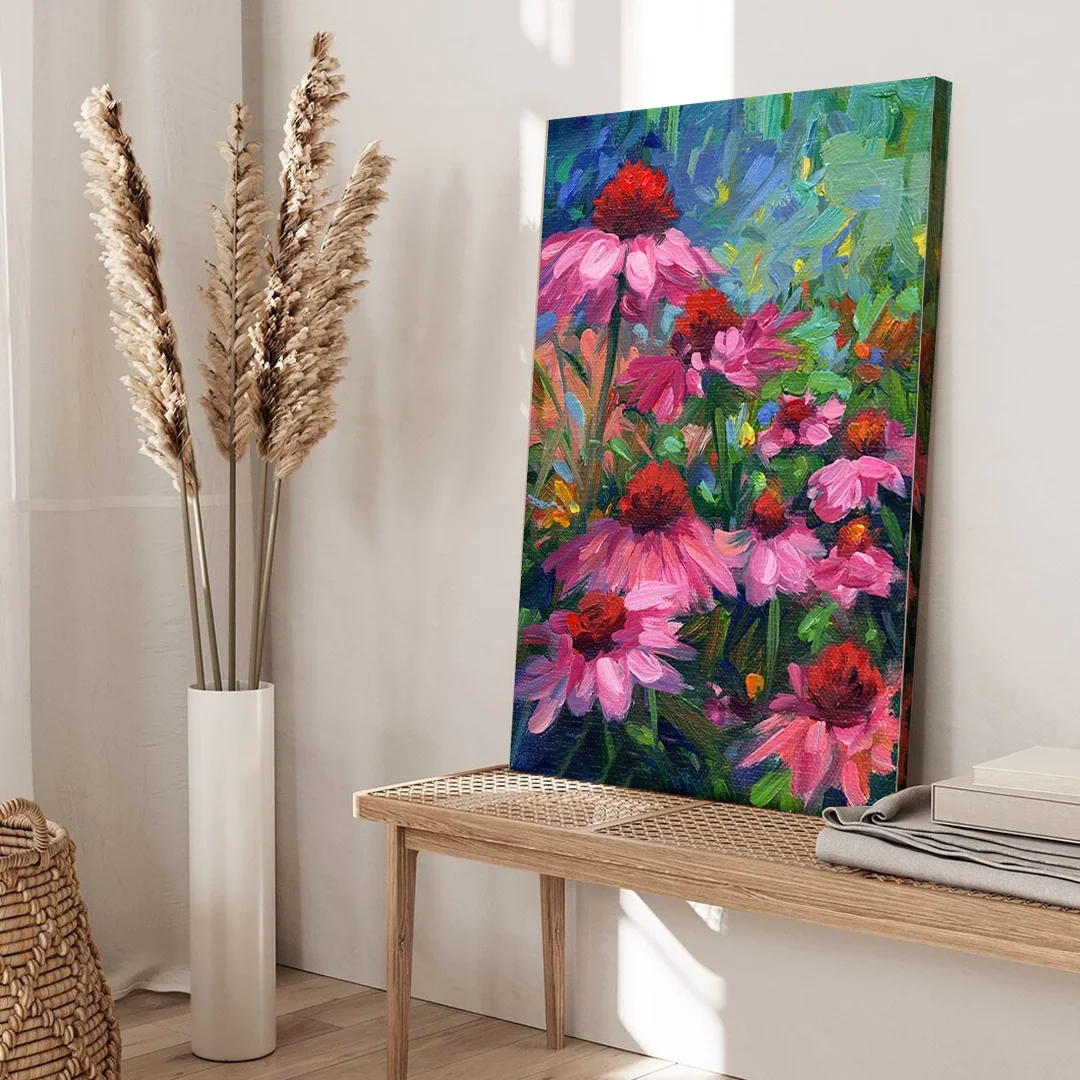 Resmin dokusu ve renklerinin zarif bir şekilde devam ettiği özel bir tasarıma sahiptir. Bu detay, tablolarımızı ek çerçeve ihtiyacı olmadan asılabilir kılar, böylece sanat eserleriniz odanızın atmosferine mükemmel bir şekilde uyum sağlar. Her bir tablomuz, sanatseverlere özel bir estetik deneyim sunmak için özenle tasarlanmıştır.