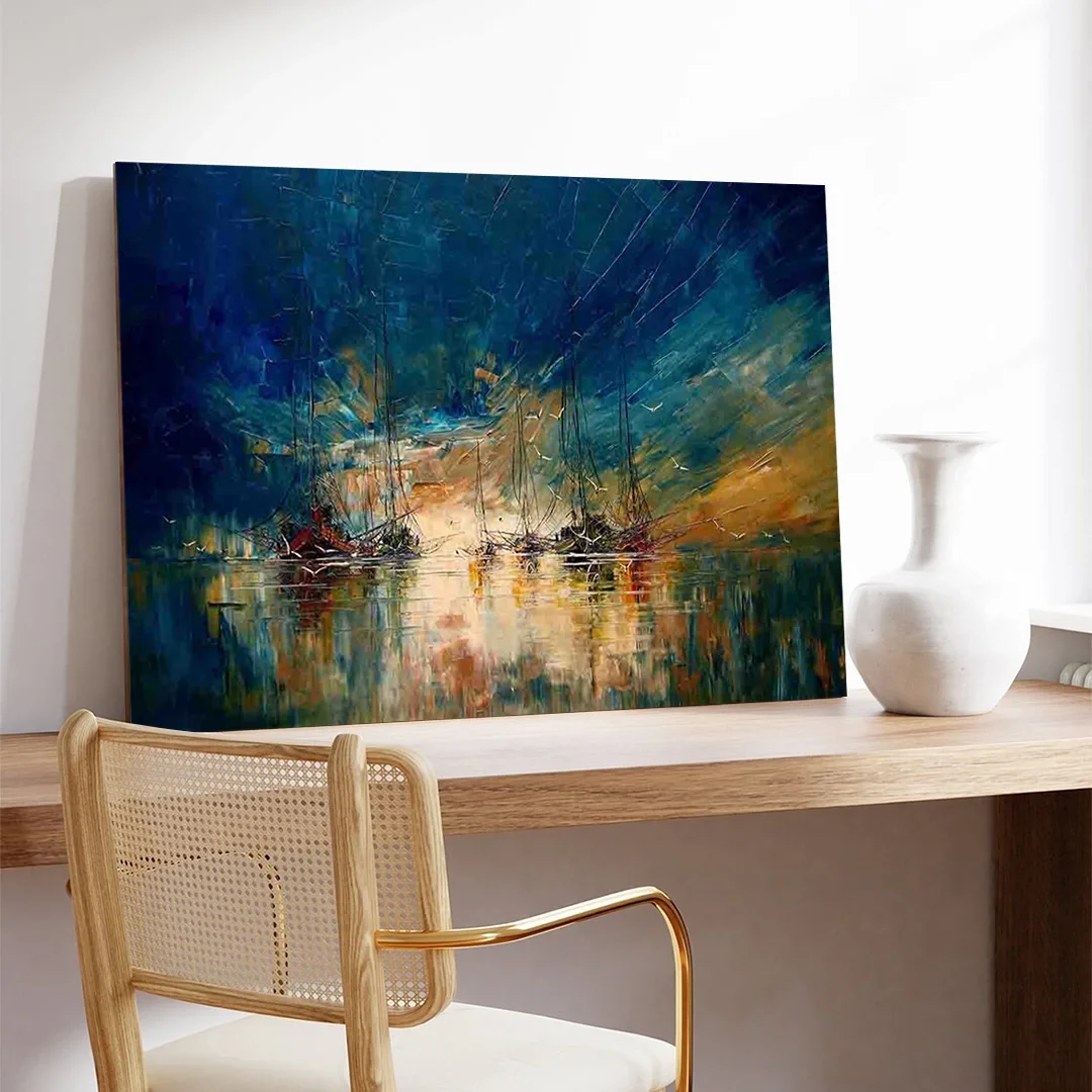 Kanvas tablonuzun bakımı oldukça kolaydır. Düzenli olarak yumuşak, kuru bir bezle tozunu alın. Direkt güneş ışığından ve nemli ortamlardan uzak tutun. Gerektiğinde hafif nemli bir bezle silebilirsiniz, ancak tablonun fazla ıslanmamasına dikkat edin.