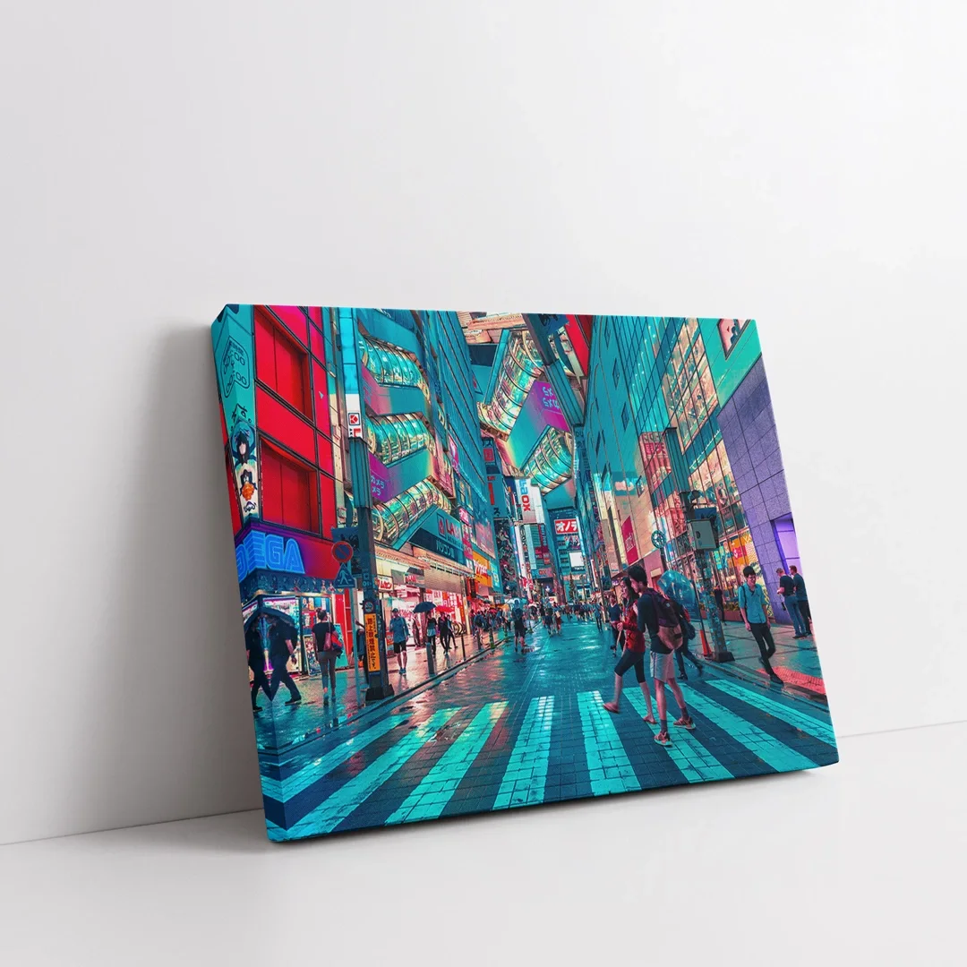 Neon Şehir Yaşamı Kanvas Tablo