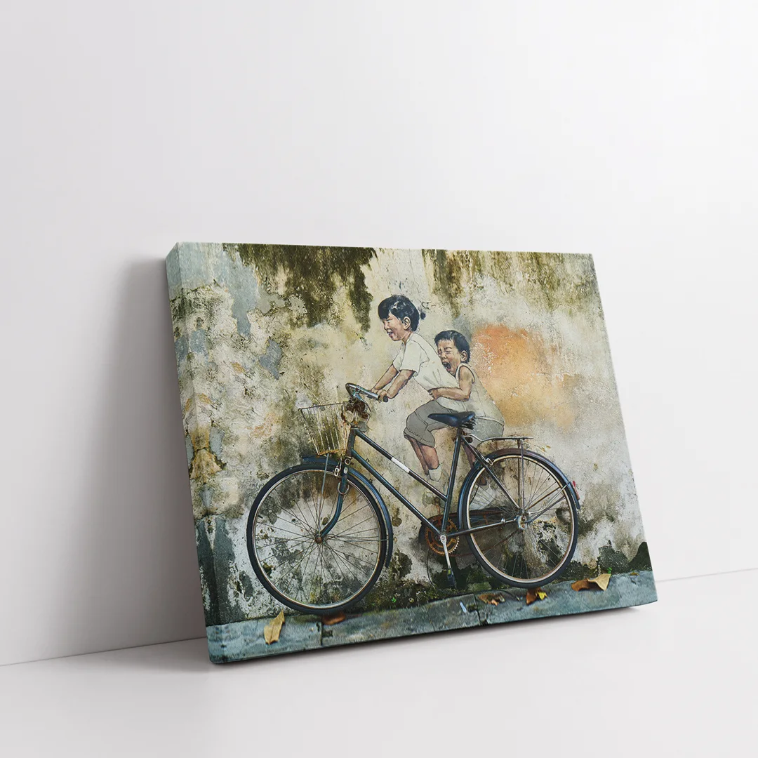 Nostaljik Bisiklet ve Çocuk Yatay Kanvas Tablo
