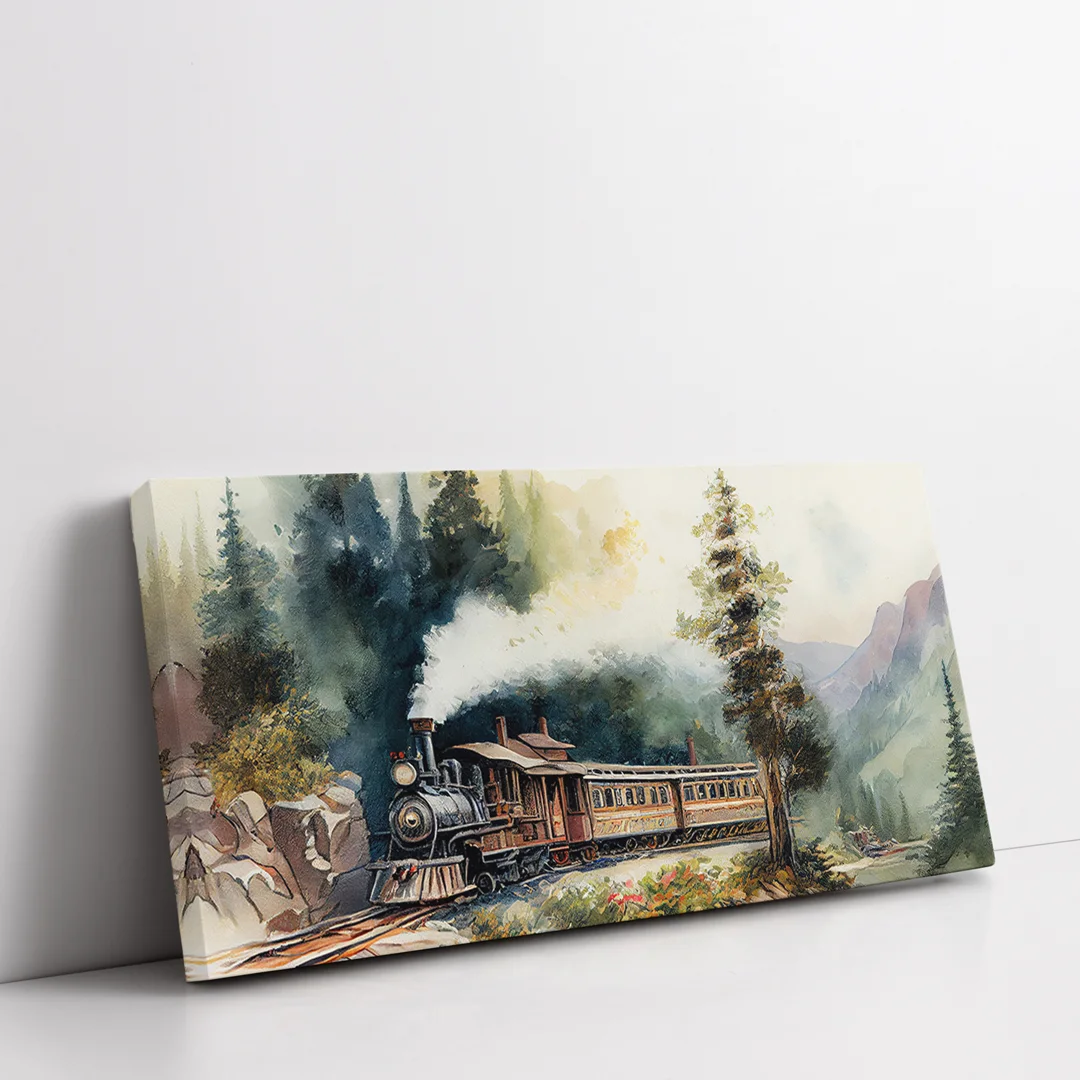Buharlı Tren Ormanda Panoramik Yatay Kanvas Tablo