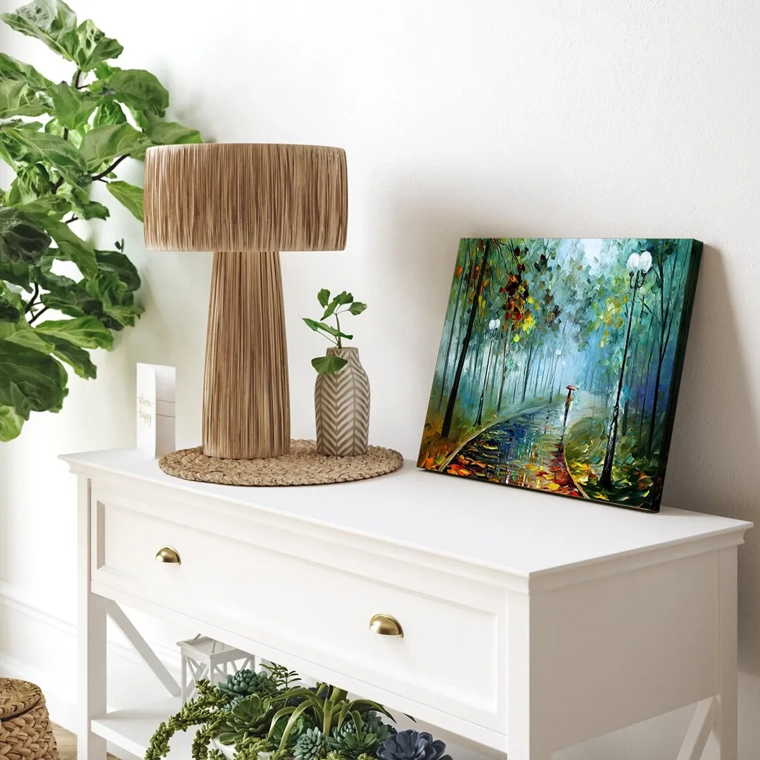 Resmin dokusu ve renklerinin zarif bir şekilde devam ettiği özel bir tasarıma sahiptir. Bu detay, tablolarımızı ek çerçeve ihtiyacı olmadan asılabilir kılar, böylece sanat eserleriniz odanızın atmosferine mükemmel bir şekilde uyum sağlar. Her bir tablomuz, sanatseverlere özel bir estetik deneyim sunmak için özenle tasarlanmıştır.