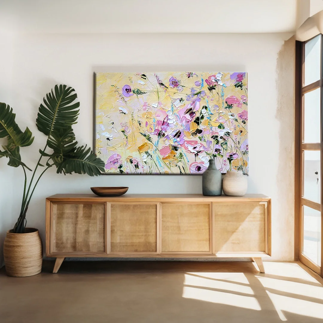 Pembe Beyaz Çiçekler Kanvas Tablo