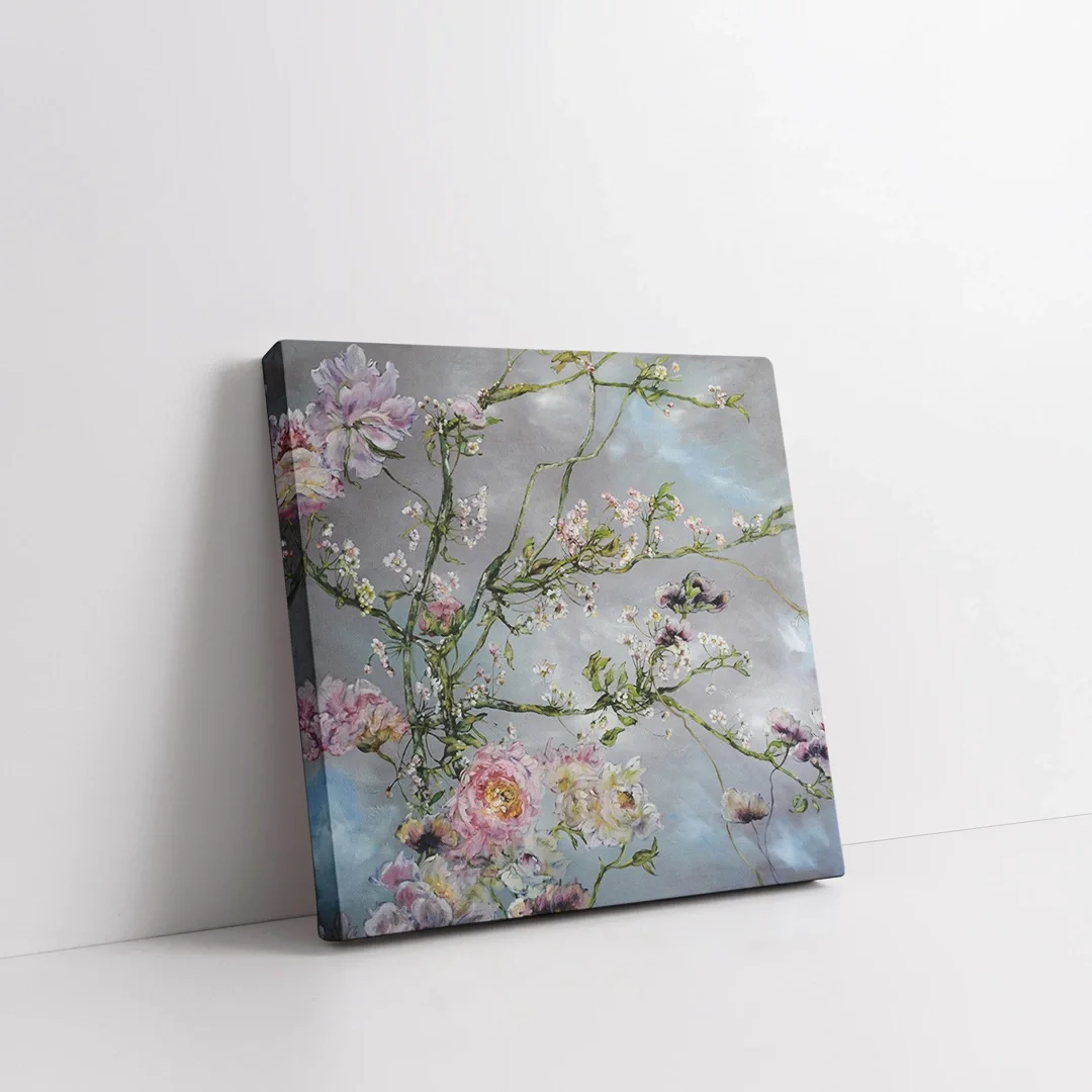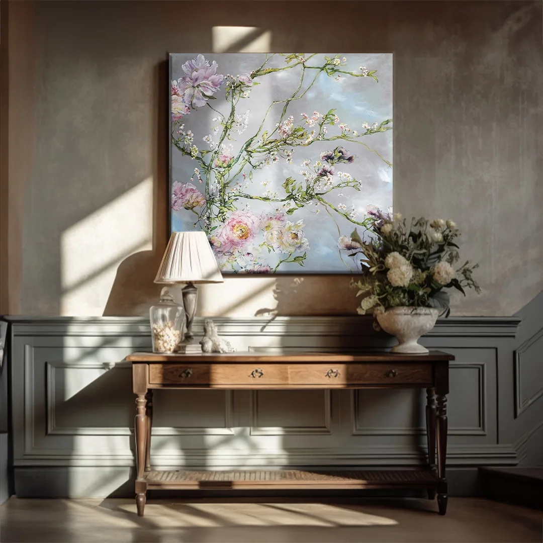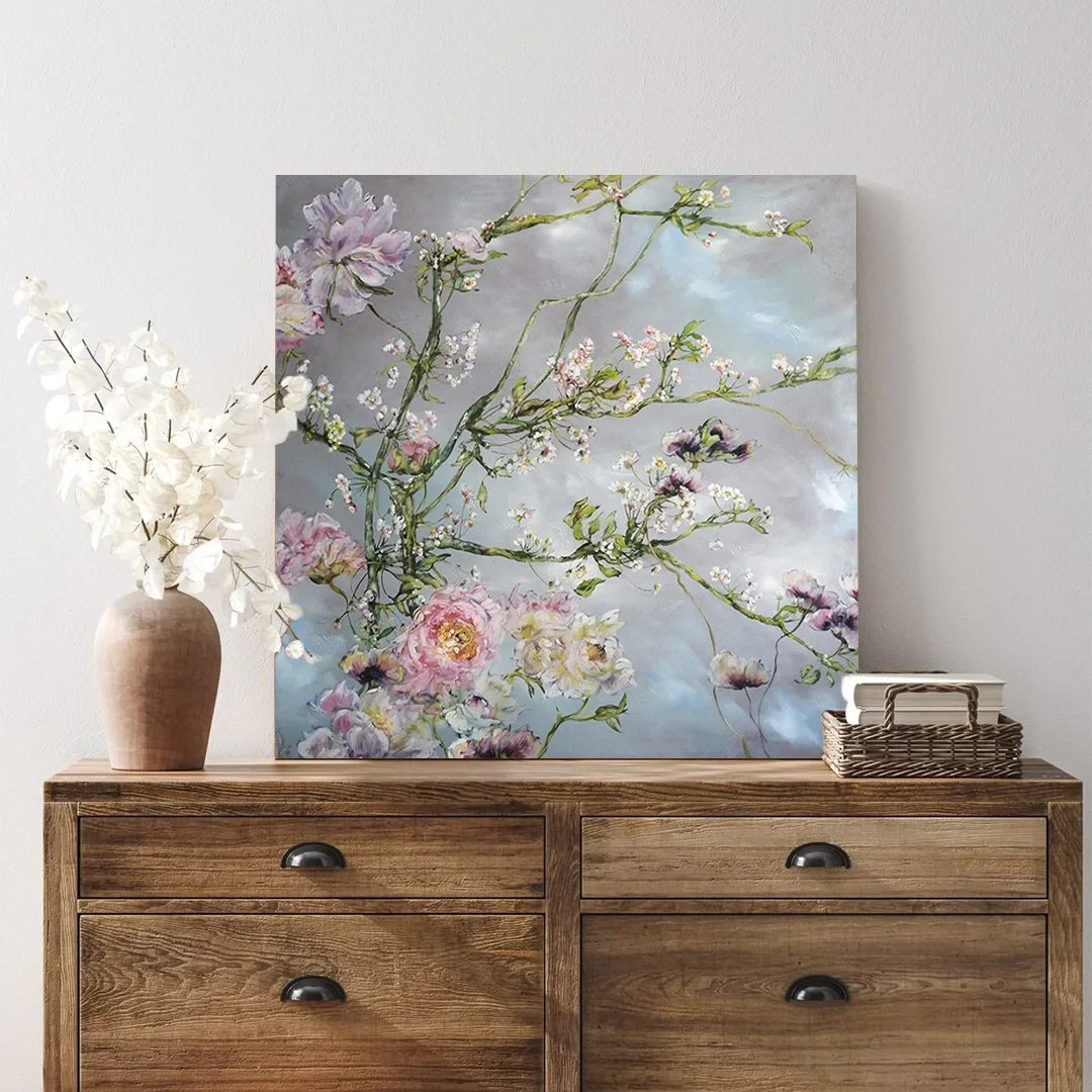Pembe Çiçekler ve Dallar Kanvas Tablo