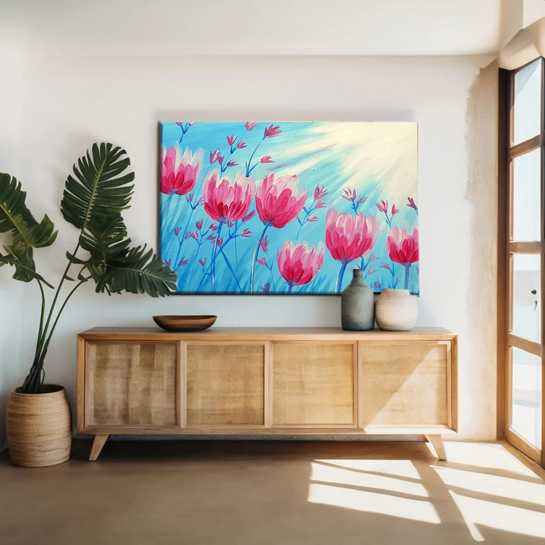 Pembe Laleler Kanvas Tablo