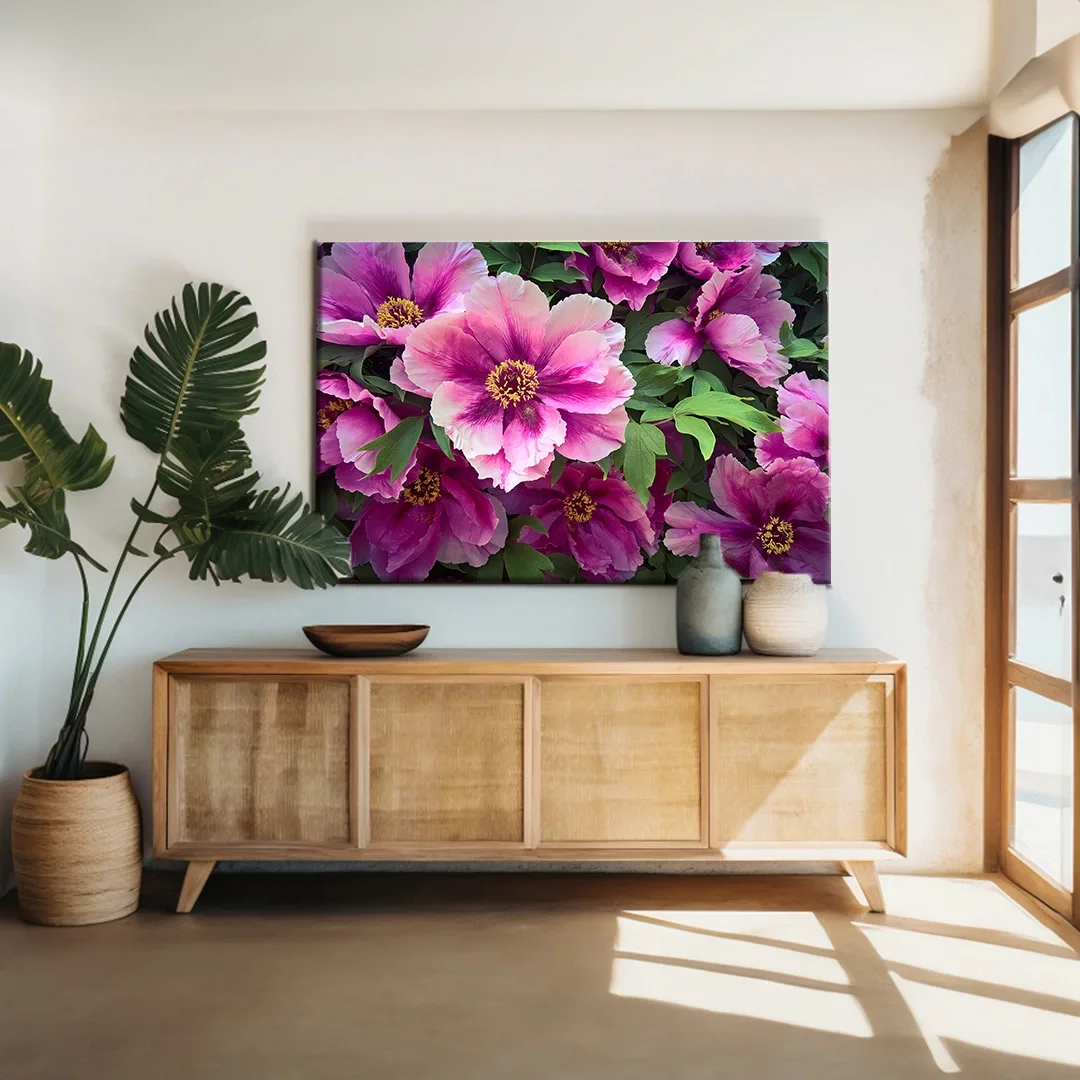 Pembe Mor Çiçek Bahçesi Kanvas Tablo
