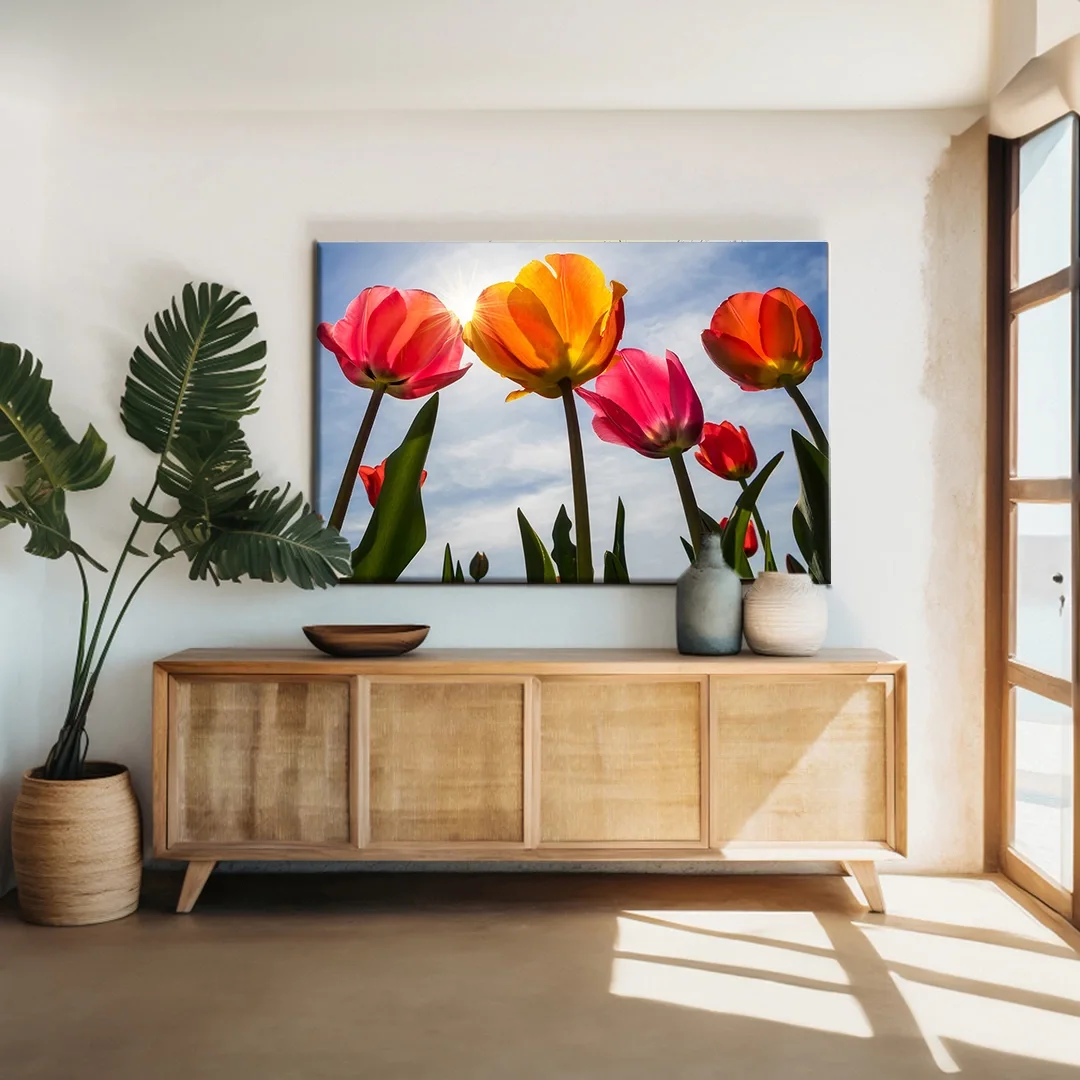 Pembe Sarı Laleler Kanvas Tablo