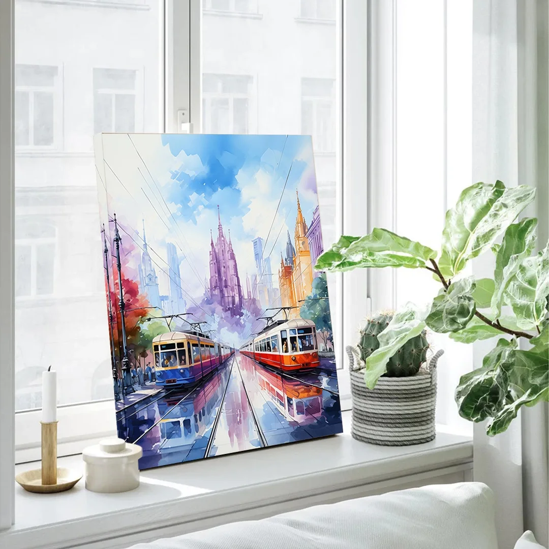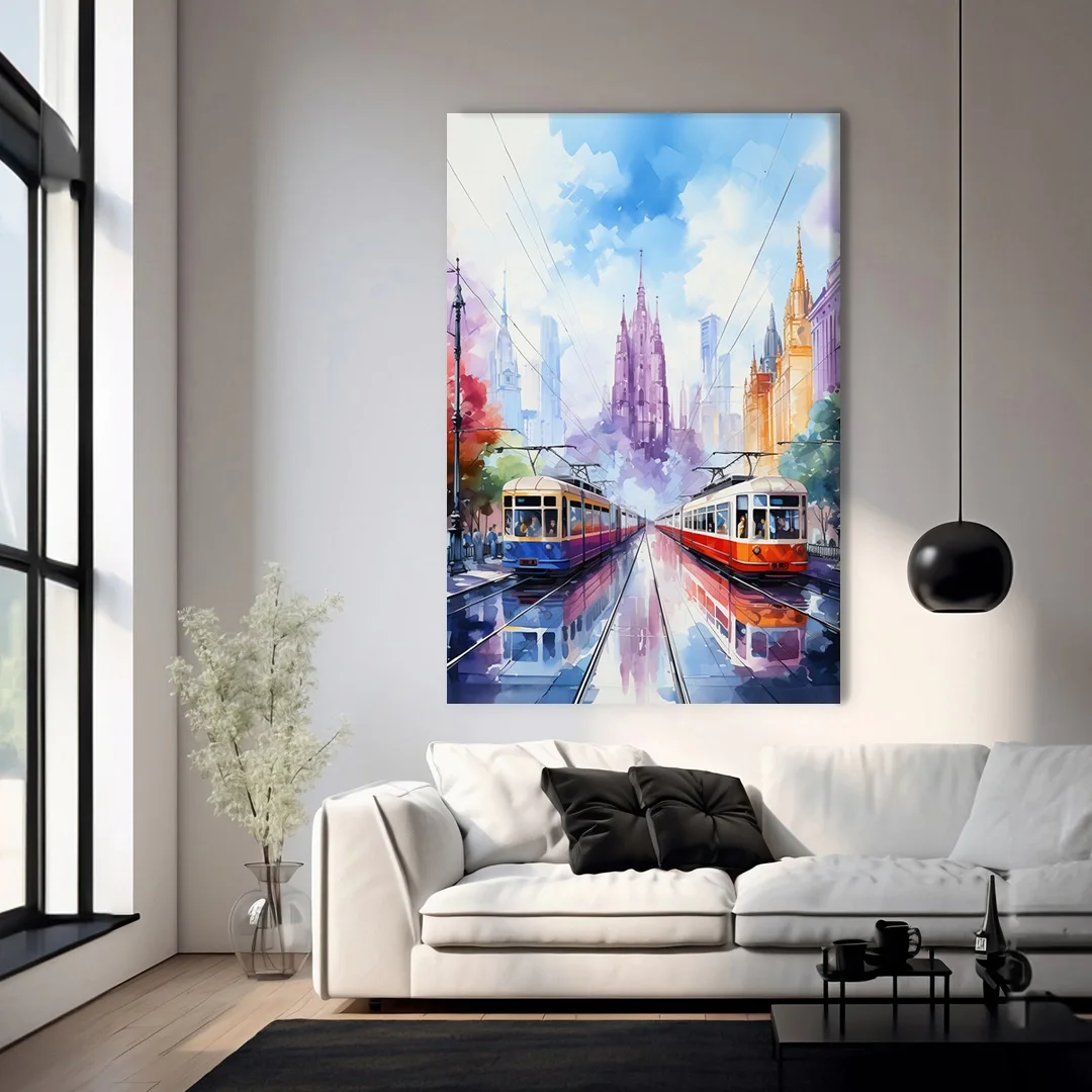 Rengarenk Şehir Hayatı Kanvas Tablo