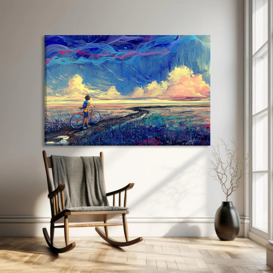 Resmin dokusu ve renklerinin zarif bir şekilde devam ettiği özel bir tasarıma sahiptir. Bu detay, tablolarımızı ek çerçeve ihtiyacı olmadan asılabilir kılar, böylece sanat eserleriniz odanızın atmosferine mükemmel bir şekilde uyum sağlar. Her bir tablomuz, sanatseverlere özel bir estetik deneyim sunmak için özenle tasarlanmıştır.