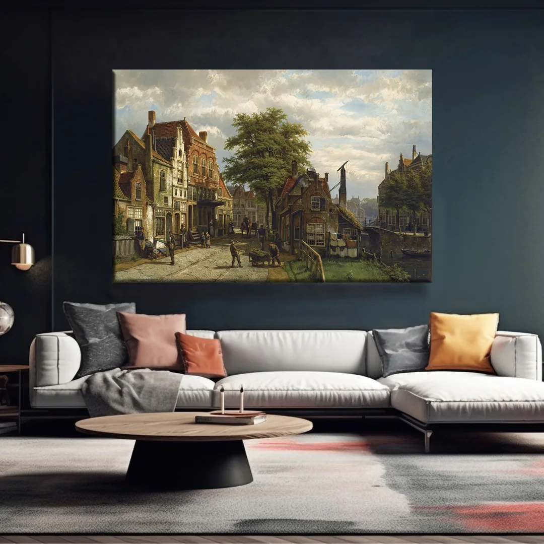 Sakin Nehir Kasabası Kanvas Tablo