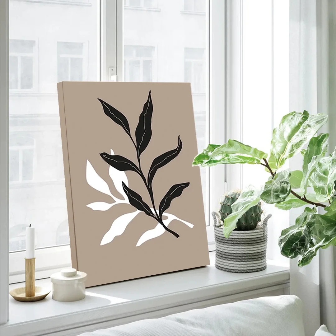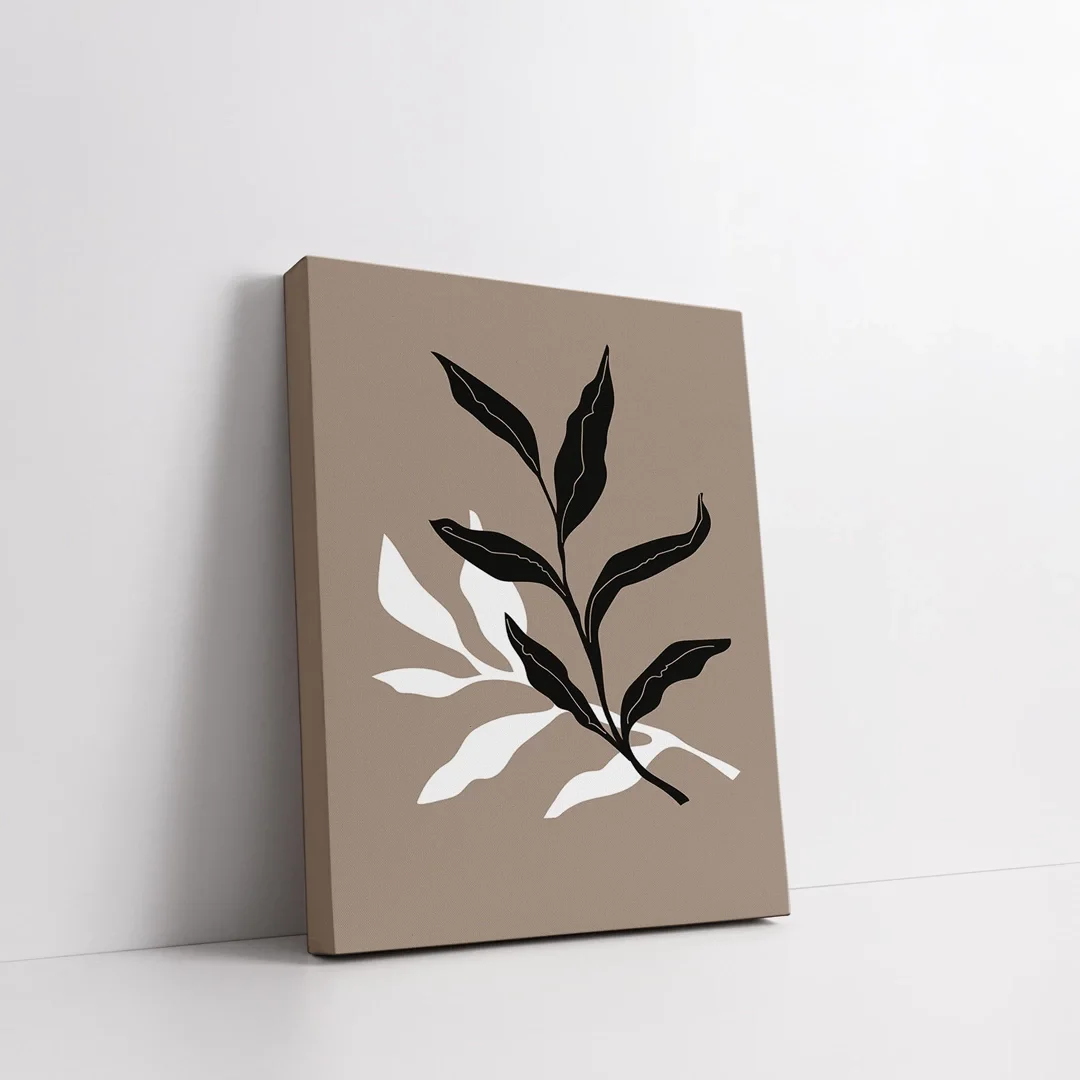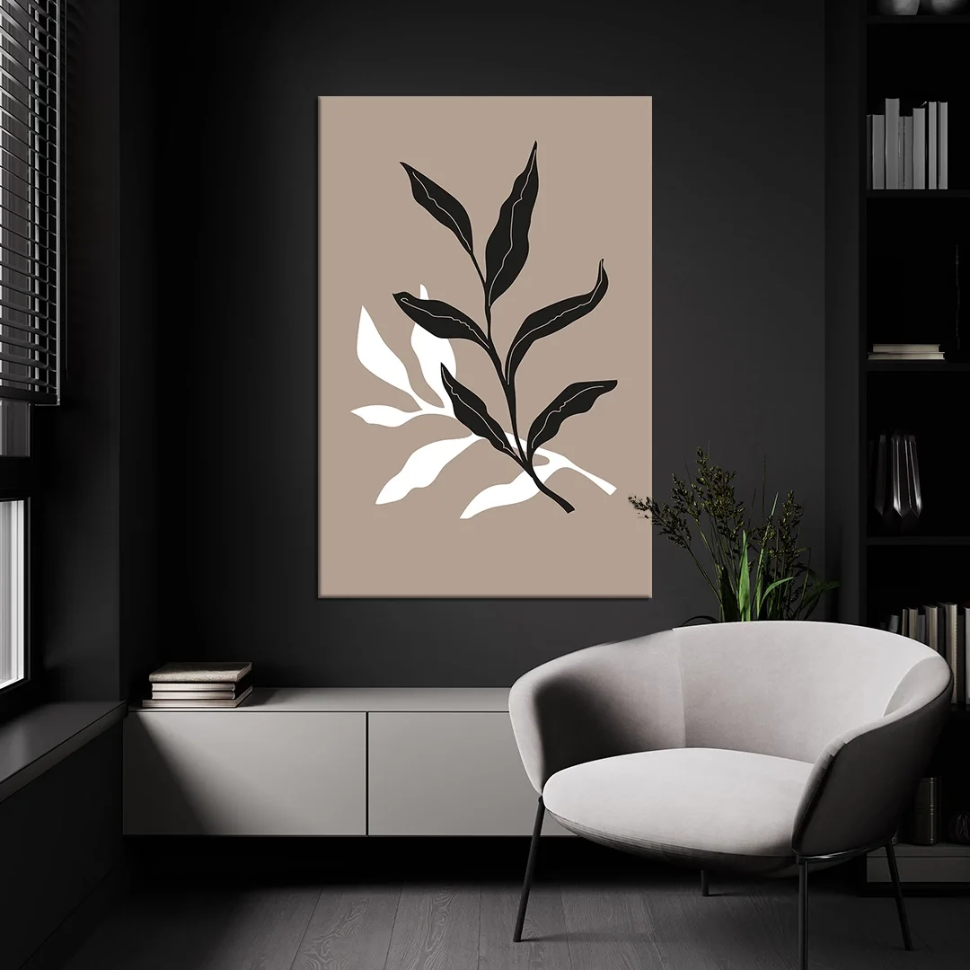 Siyah Beyaz Yapraklı Kanvas Tablo