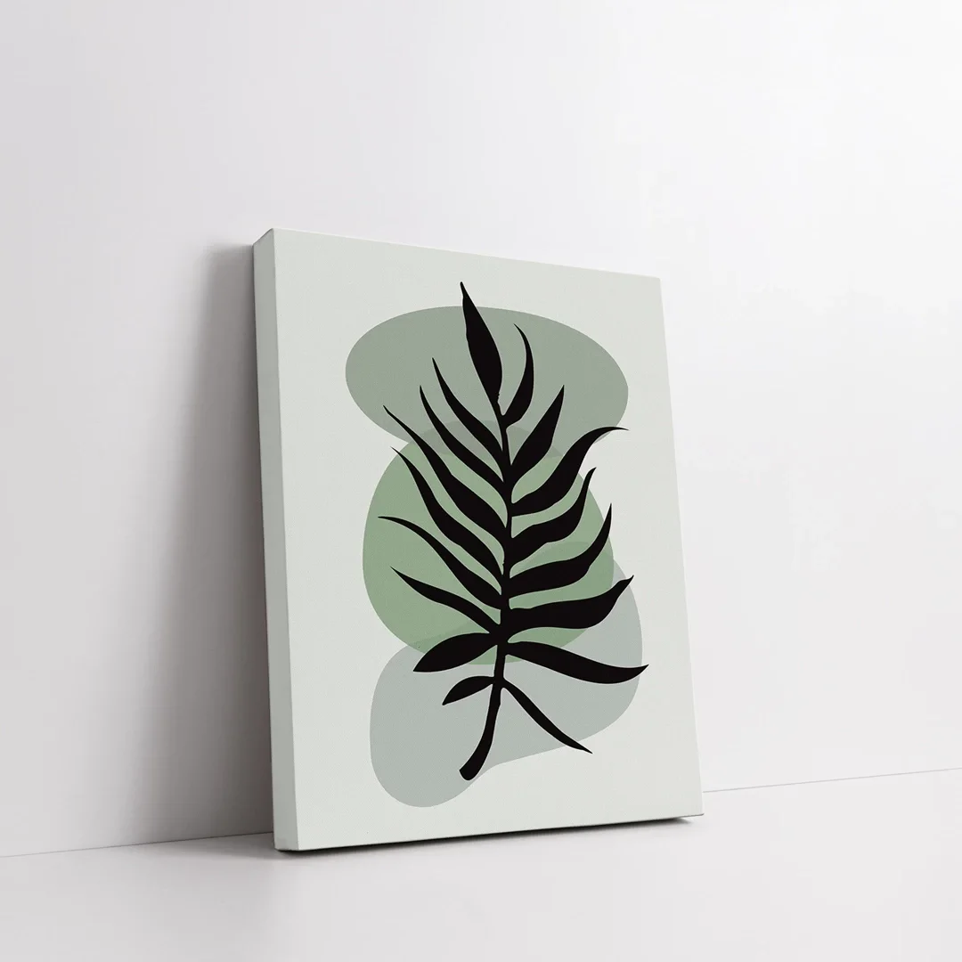 Siyah Yaprak Desenli Kanvas Tablo
