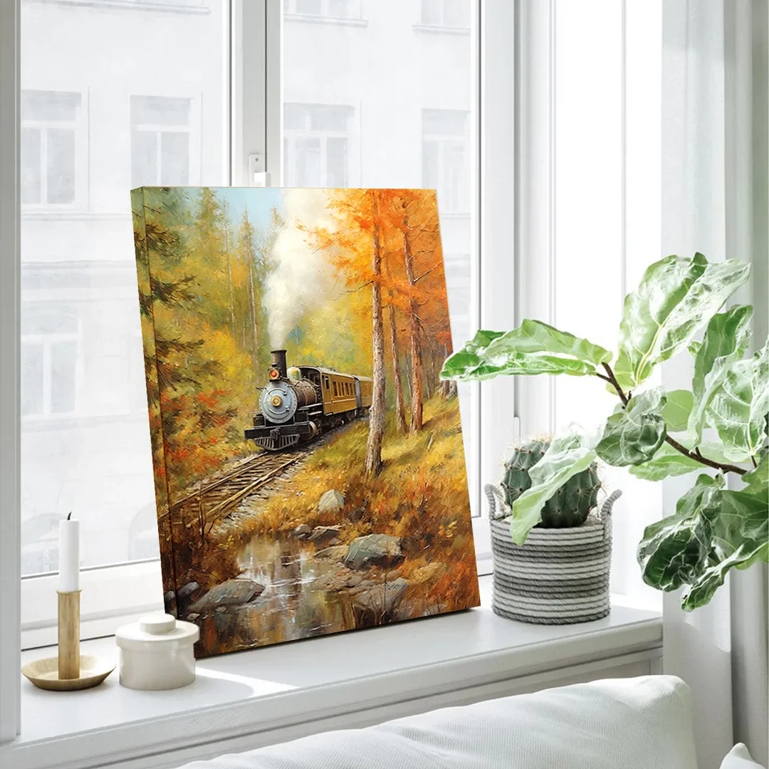 Sonbahar Treni Dikey Kanvas Tablo