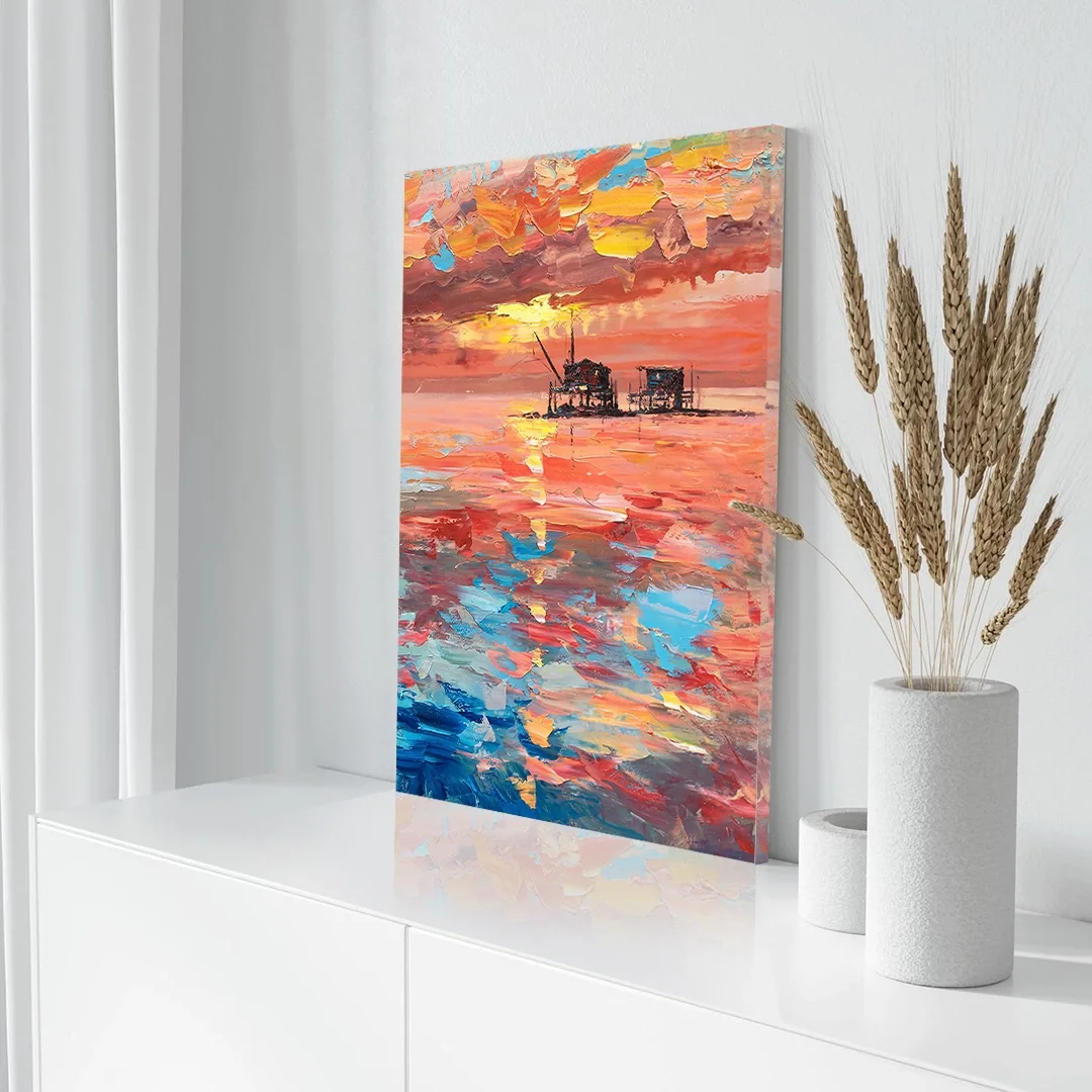 Resmin dokusu ve renklerinin zarif bir şekilde devam ettiği özel bir tasarıma sahiptir. Bu detay, tablolarımızı ek çerçeve ihtiyacı olmadan asılabilir kılar, böylece sanat eserleriniz odanızın atmosferine mükemmel bir şekilde uyum sağlar. Her bir tablomuz, sanatseverlere özel bir estetik deneyim sunmak için özenle tasarlanmıştır.