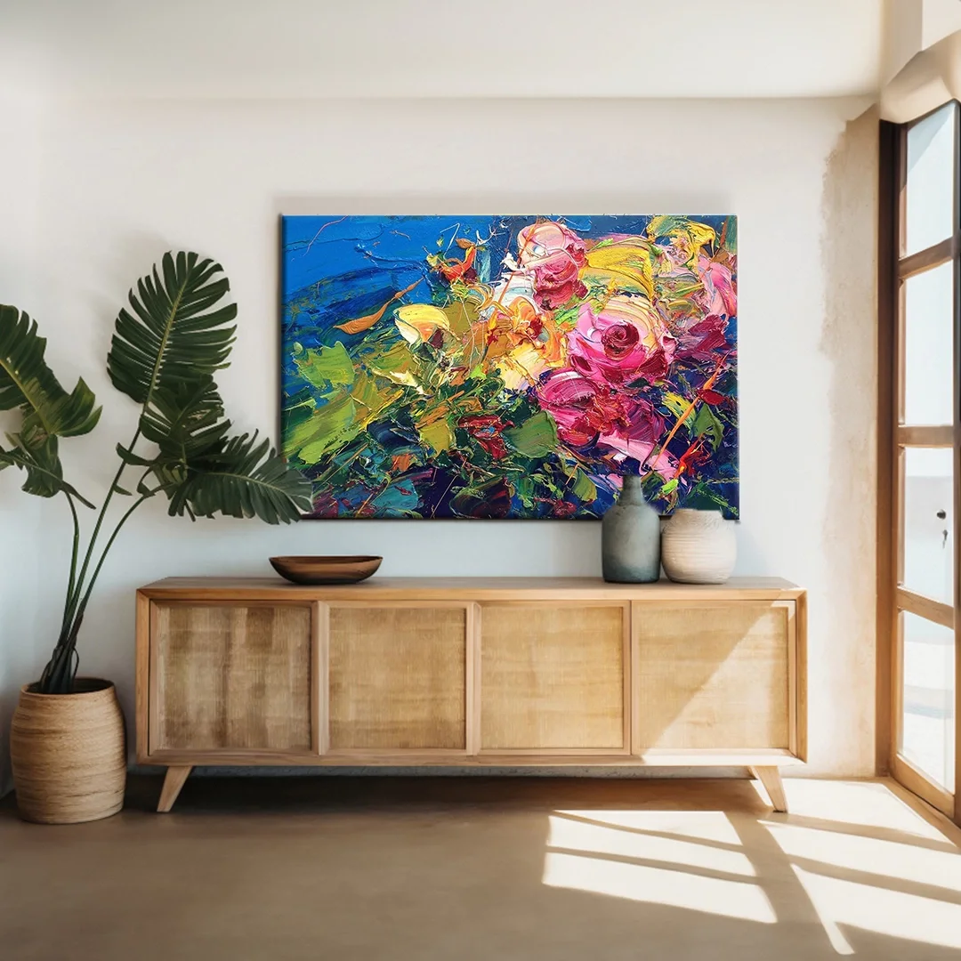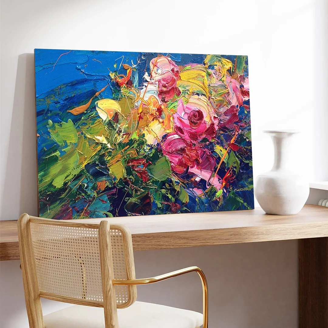 Resmin dokusu ve renklerinin zarif bir şekilde devam ettiği özel bir tasarıma sahiptir. Bu detay, tablolarımızı ek çerçeve ihtiyacı olmadan asılabilir kılar, böylece sanat eserleriniz odanızın atmosferine mükemmel bir şekilde uyum sağlar. Her bir tablomuz, sanatseverlere özel bir estetik deneyim sunmak için özenle tasarlanmıştır.
