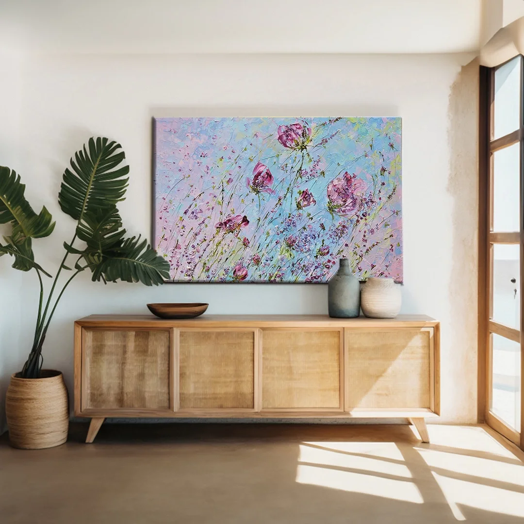 Soyut Pembe Çiçek Kanvas Tablo